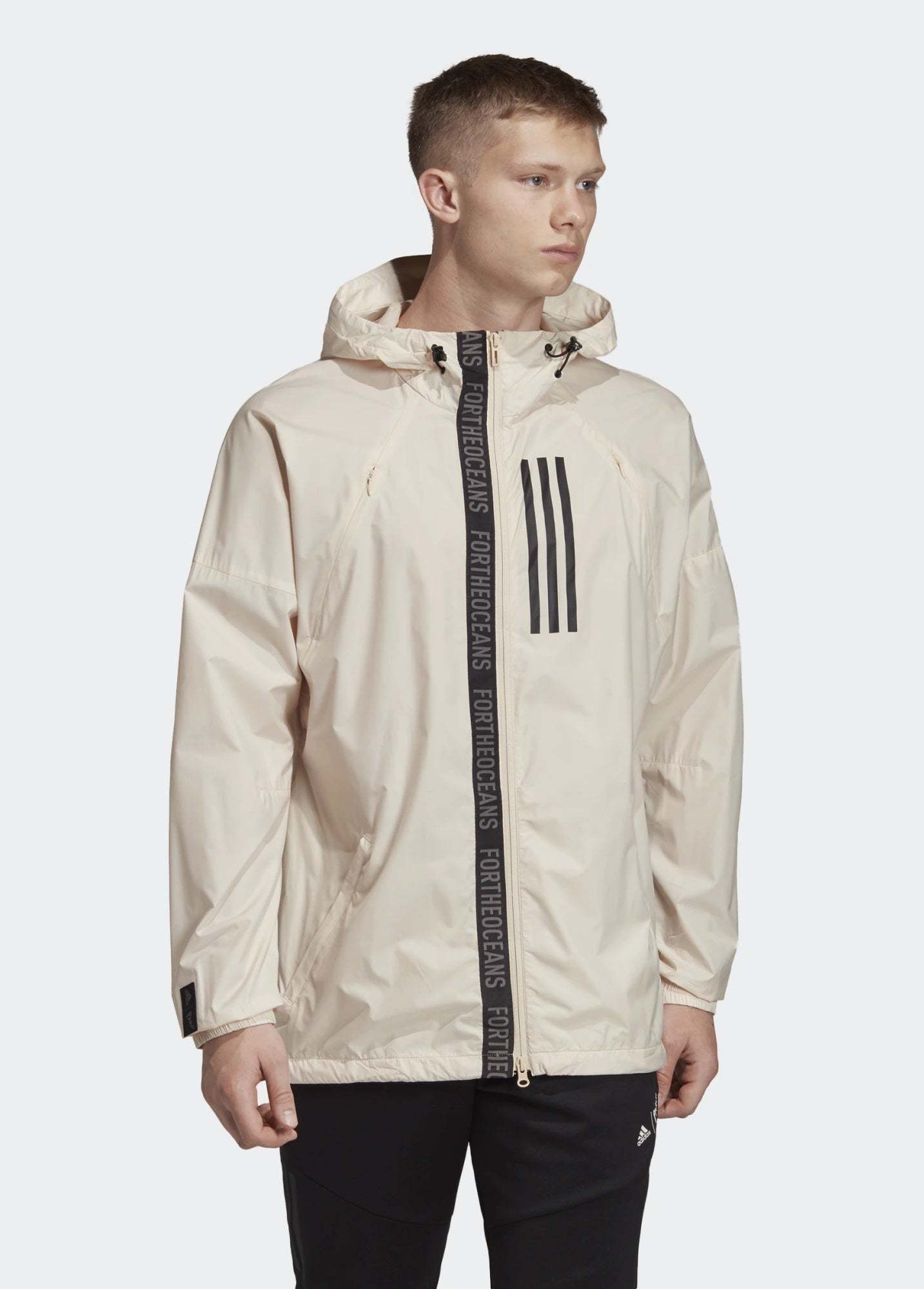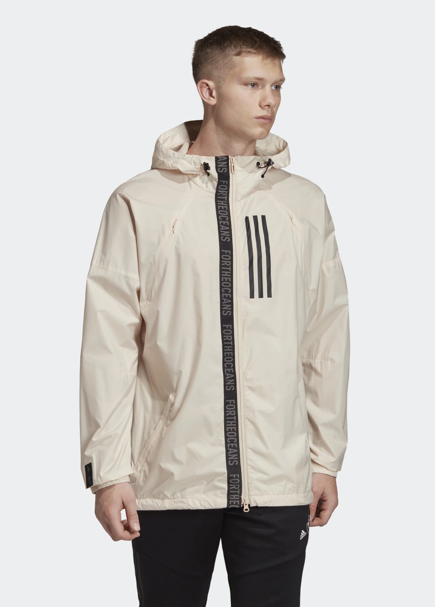 From work to your workout, this wind jacket keeps you covered from the elements. Lightweight and water-repellent, it's an easy layer to stash away in your pack in case of rain. There are zips on the chest for ventilation and bungee cords at the hem so you can switch up the shape. This product is created with yarn made in collaboration with Parley for the Oceans. Some of the yarn features Parley Ocean Plastic™ which is made from recycled waste, intercepted from beaches and coastal communities before it reaches the ocean.