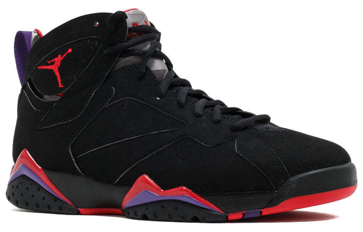 The Nike Air Jordan 7 Retro 'Raptor' 2012 is a re-release of the classic OG 1992 colorway. This time around, the design combines black nubuck upper with True Red and Club Purple accents, making it a perfect sneaker for fans of the Toronto Raptors team. The 2012 version of this shoe features updated materials and construction methods, making it even more comfortable and durable than the previous versions. Whether you're a die-hard Jordan fan or just looking for a fresh new look, the Air Jordan 7 Retro 'Raptor' is a must-have.