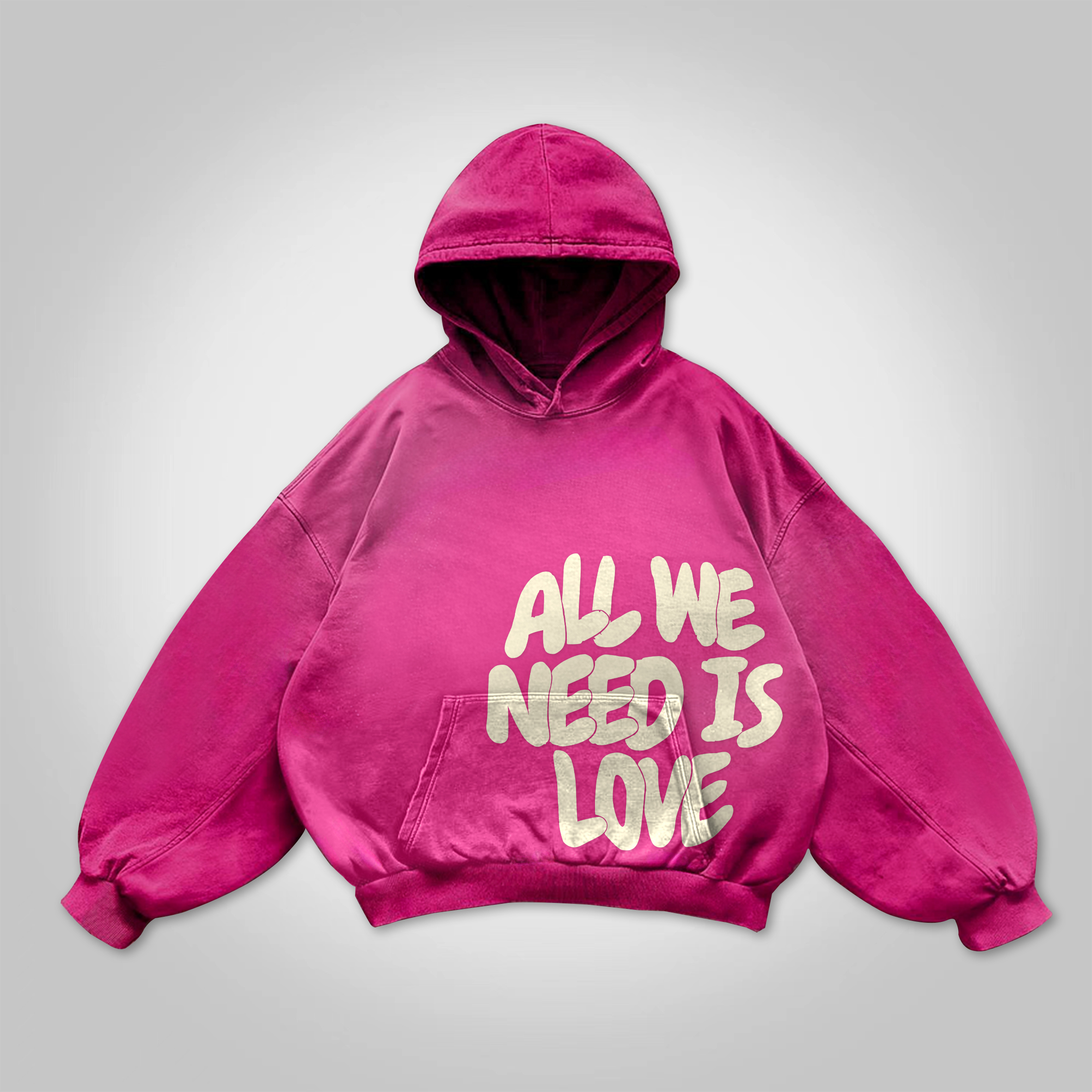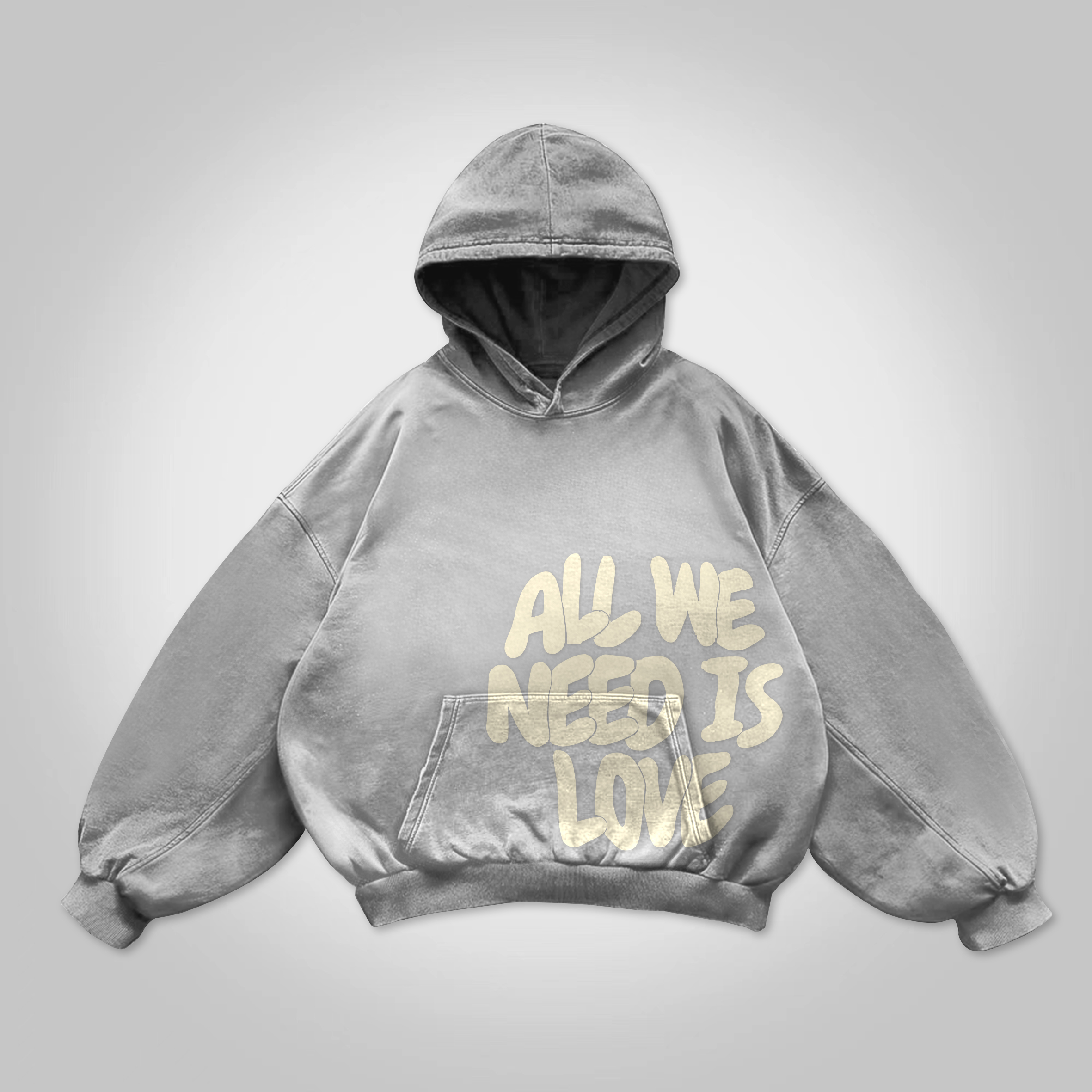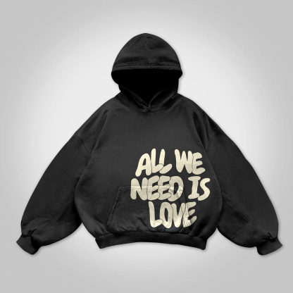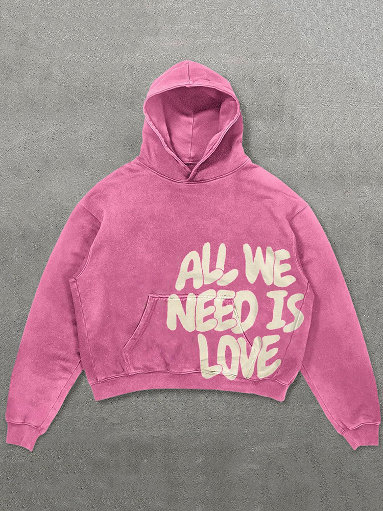 All We Need Is Love Print Graphic Acid Washed Oversized Hoodie