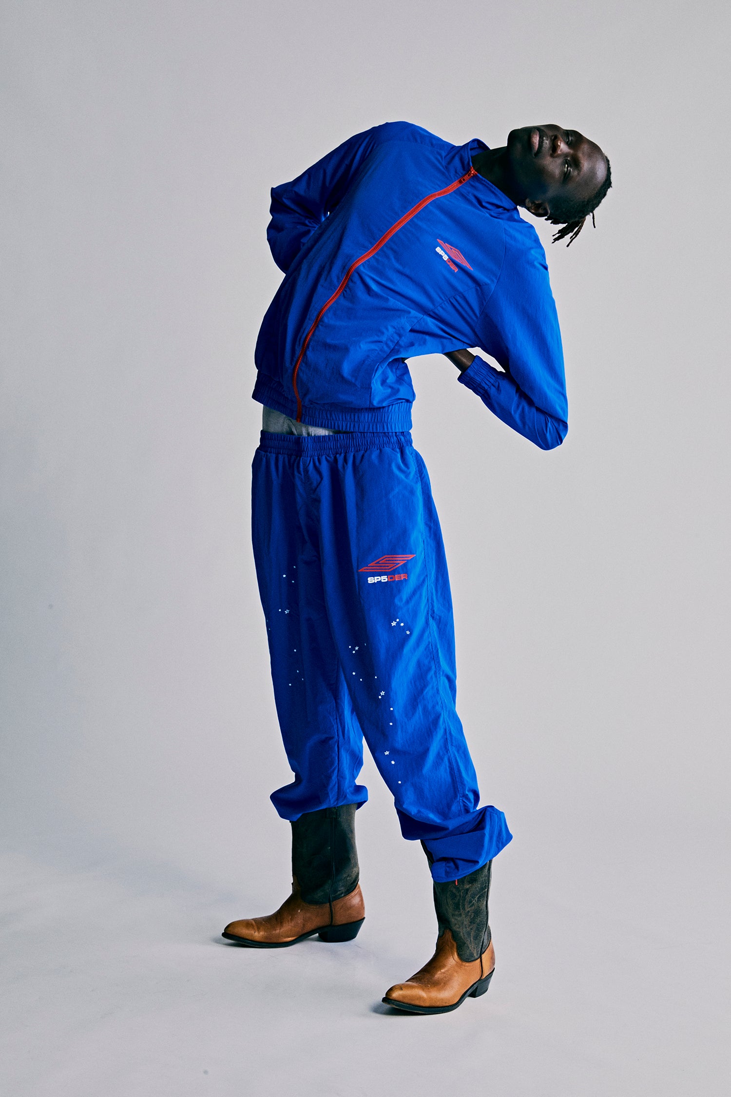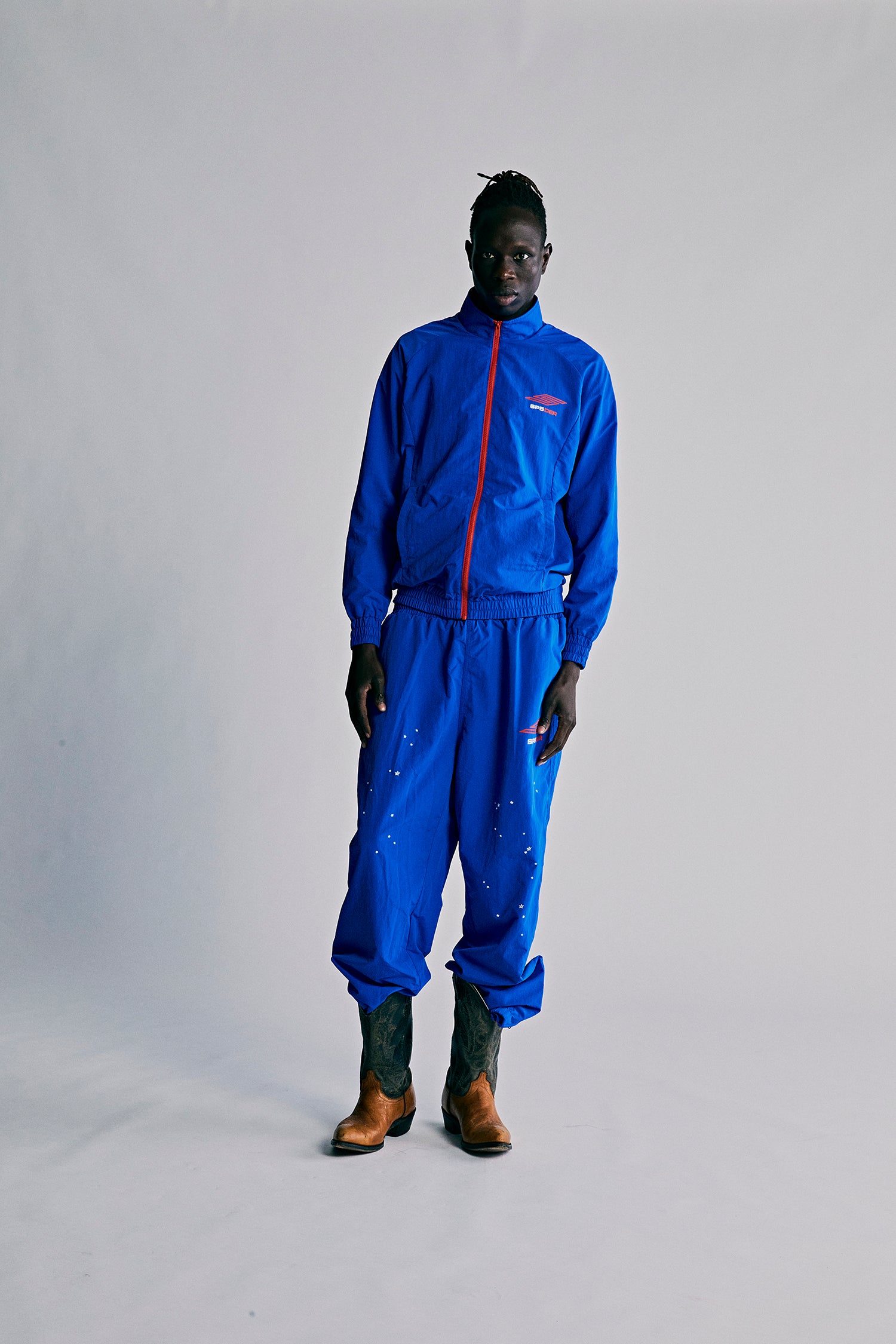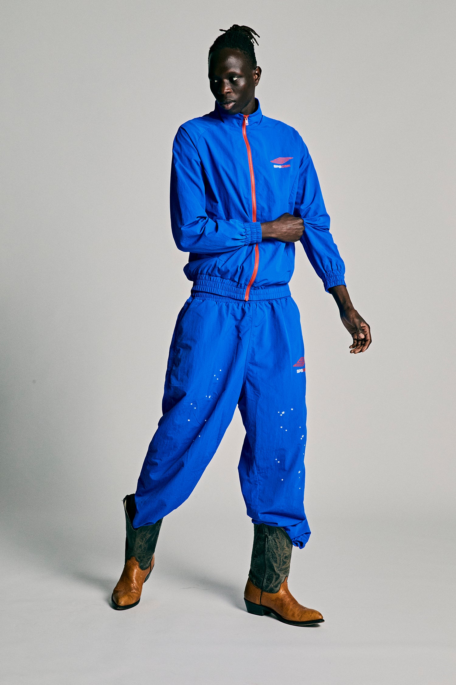 Nylon ripstop windbreaker. Mock neck. Contrast zip closure. Two-pocket styling. SP5 Pro logo at chest and back. Elasticized cuffs and waistband.