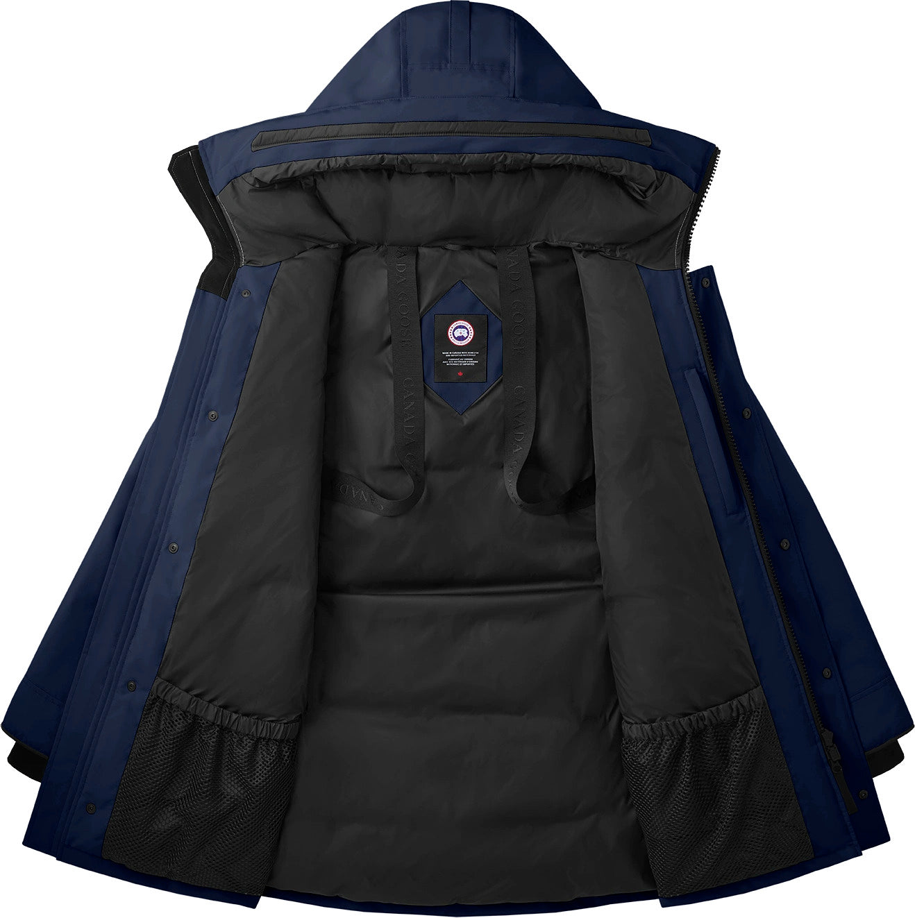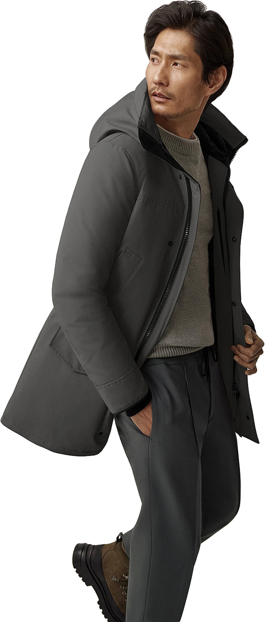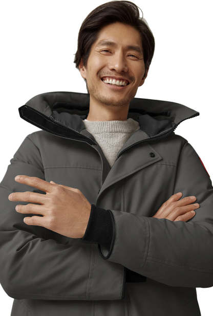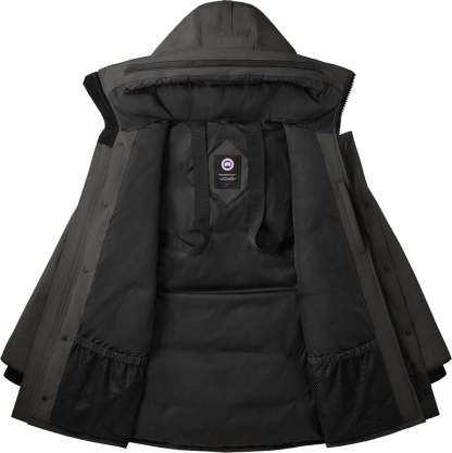 • Le capuchon est doté d’un protège-fermeture éclair amovible, offrant la possibilité de changer sa garniture pour une allure personnalisée et une protection accrue (ce manteau n’est pas compatible avec les garnitures du capuchon Heritage)
