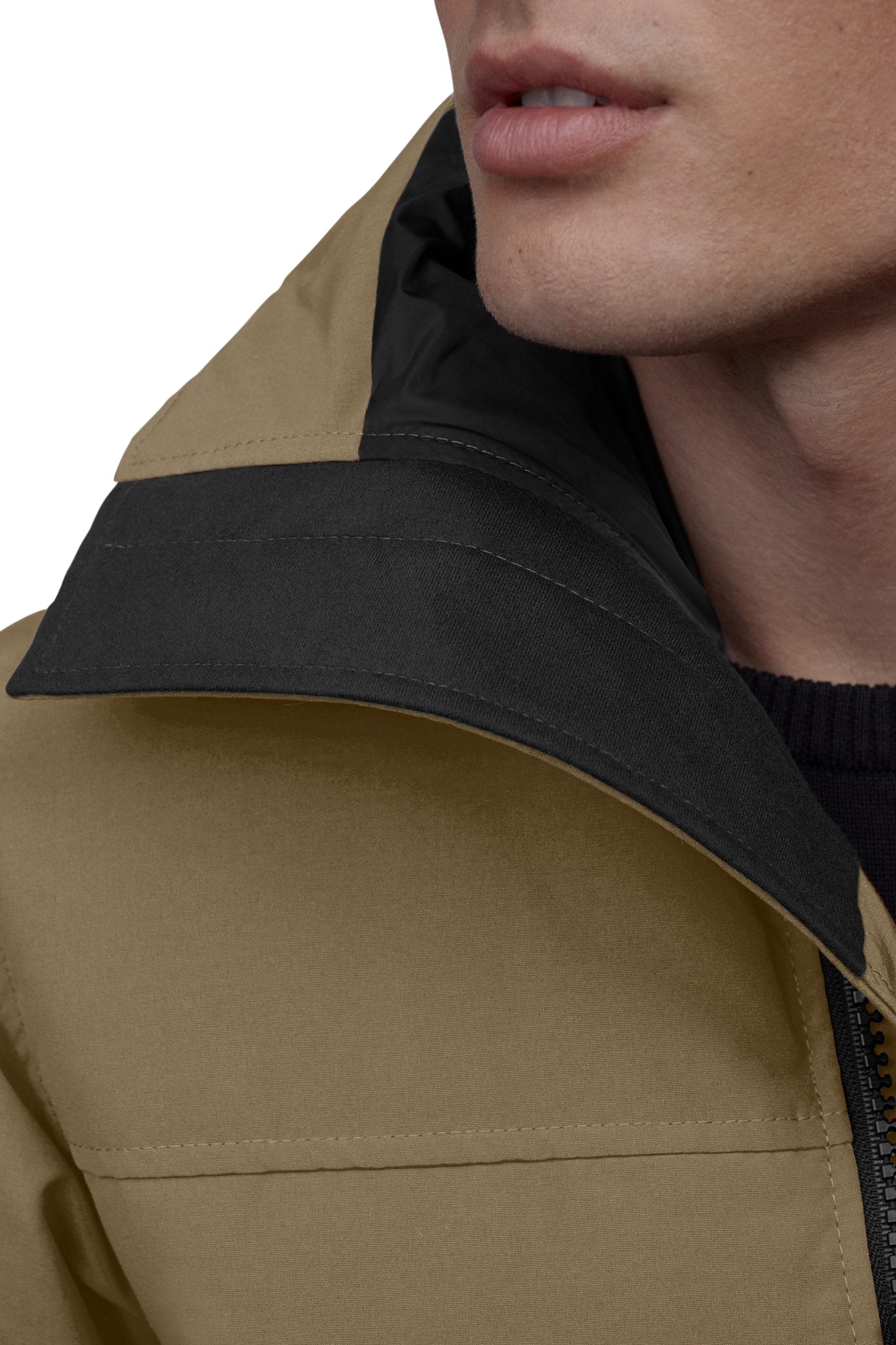 • Le capuchon tuba en duvet ajustable de deux façons offre une protection accrue.