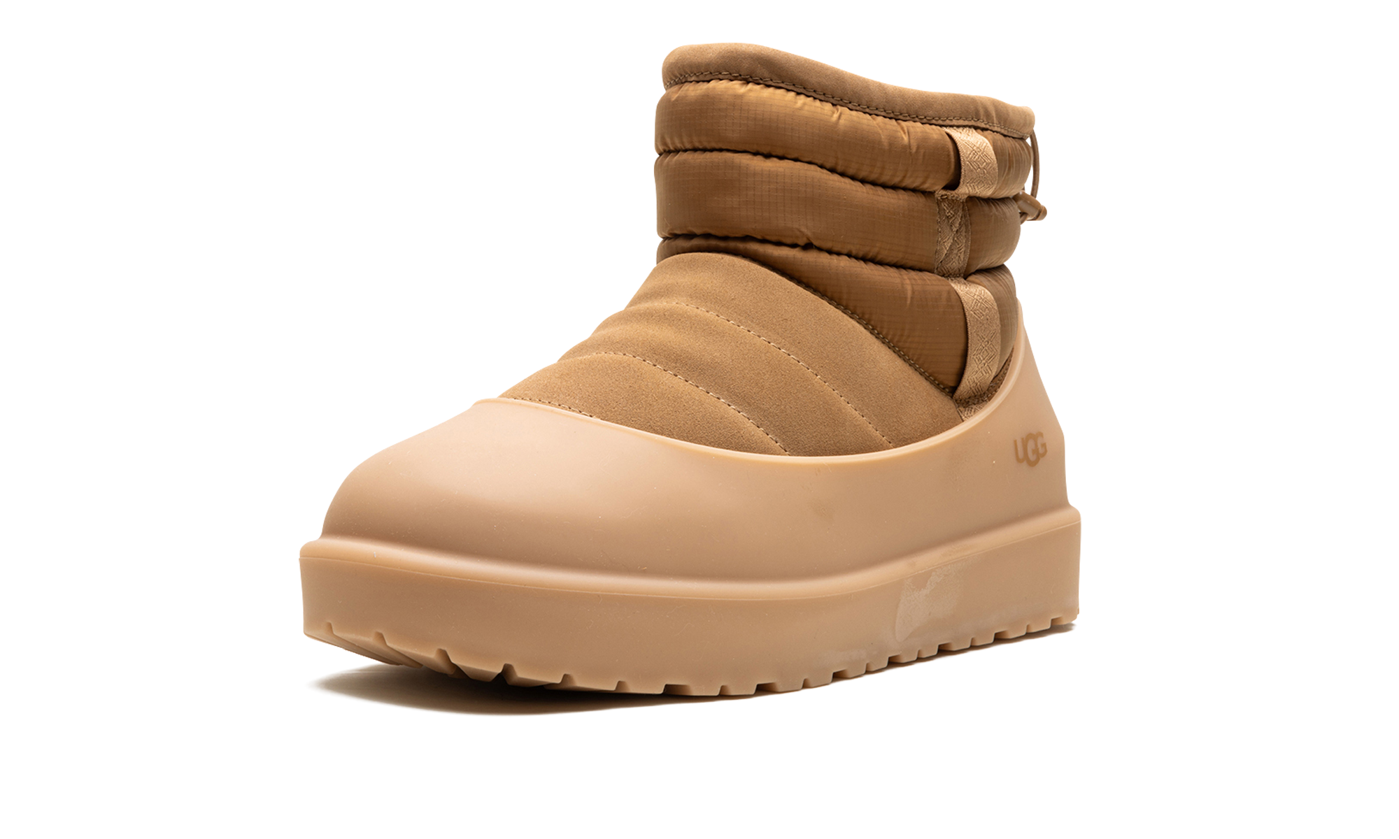 Endure the elements in style with the UGG Classic Mini Pull-On Weather Boot "Chestnut", the reliable Winter Warrior. This boot features seam-sealed, waterproof suede and a plush UGGplush™ wool-blend lining, engineered to keep you warm in temperatures as low as -20˚C. The pull-on design is secured with a drawcord toggle and enhanced with 3M™ Featherless insulation. With a lightweight Treadlite by UGG™ outsole, this boot delivers signature comfort and weatherproof traction for any chilly adventure.