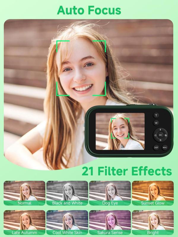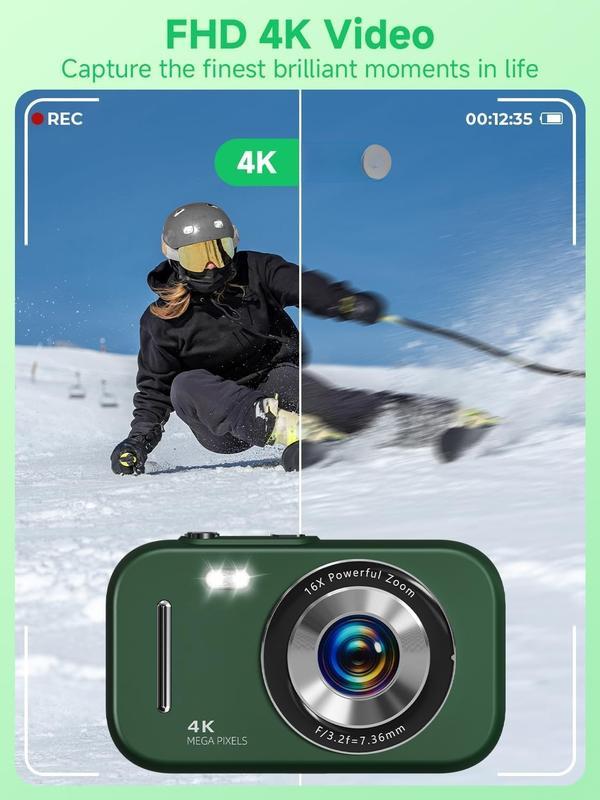 48MPK & 4K Digital Camera: This digital camera small can not only record 4K FHD videos but also take 48MP photos. The images it captures are rich in detail, in color, and can accurately reproduce real scenes. It is perfectly suited for documenting precious moments in events, trips, gatherings, or everyday life. Beauty Filter & Framing Grid: Digital camera comes with beauty enhancement, which optimizes tone and reduces while preserving a realistic texture. Equipped with grid lines, it framing based on classic composition principles, allowing even beginners to take balanced, visually appealing shots. It works well for selfies, group photos, outdoor , and more scenarios. 16X Digital Zoom & Versatile Modes: Equipped with 16x digital zoom, this compact digital camera lets you easily present distant subjects clearly. Its built-in image stabilization technology ensures photos are and detailed. Additionally, it also features motion detection, continuous , self-timer, and slow-motion functions, making it an ideal camera for recording family gatherings, parties, and other joyful occasions. 2.8-inch Screen & Webcam/Vlogging Function: 4K digital camera is equipped with a 2.8-inch screen that clearly displays images and operation menus. Whether for real-time viewing, or reviewing photos and videos, it delivers an intuitive and convenient visual experience. This vlogging camera can also be as a webcam, allowing you to easily start live streams or make video calls on social media platforms such as YouTube, , and Twitter, meeting diverse creative needs. & Full Accessories: This point and shoot camera is especially suitable as a for . Whether it' 's birthday or various festivals, it’s to give on these important occasions. The small digital camera set comes with a 32GB SD card, a card reader, a Type-C , a lanyard, and an instruction manual you can start using it directly after unpacking, which is extremely convenient.