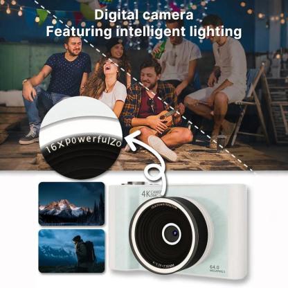 📸 Digital Camera for Photography & VloggingCapture stunning footage with this compact point-and-shoot camera. It features a 180° flip screen for versatile shooting angles. The 16X zoom capability ensures sharp images from any distance. Perfect for vloggers, it includes built-in fill light for balanced lighting. Comes with a 32GB card for ample storage.🌟 Key Features·Anti-shake technology for smooth video.·180° flip screen for creative angles.·16X zoom for detailed shots.·Includes fill light for better lighting.·32GB card for extended recording time.📦 Compact & VersatileIdeal for photography and vlogging, this camera offers convenience without compromising on quality. Its design allows for easy handling and portability. Capture your moments with clarity and ease, making it a must-have for enthusiasts.