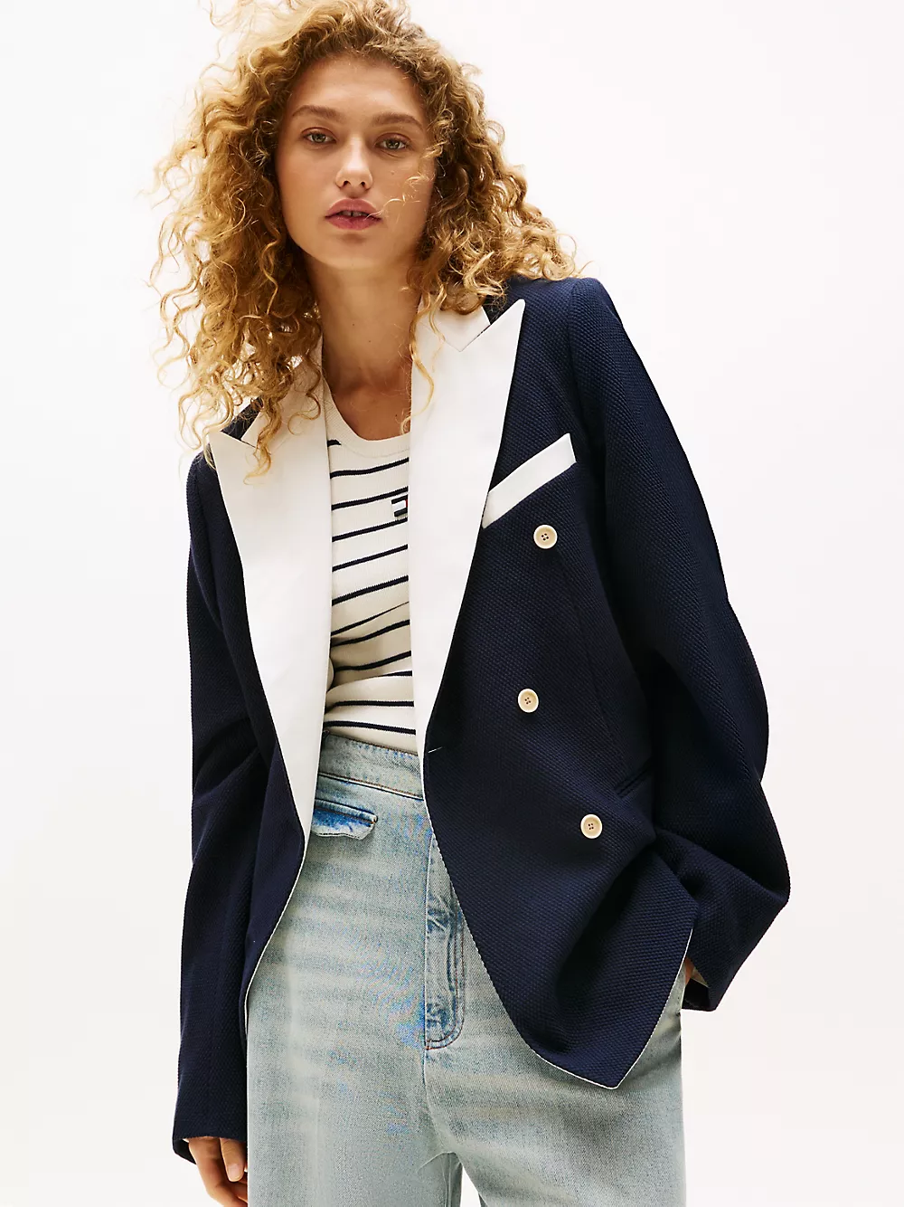 Tommy Hilfiger women's blazer. Our double-breasted blazer tops off your summer looks with a touch of nautical flair. A limited-edition style from our Spring 2025 runway collection.