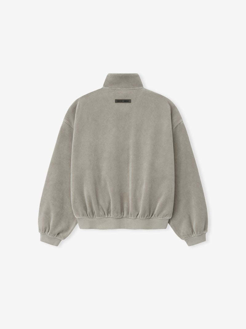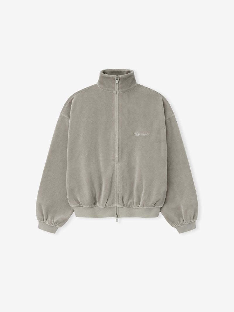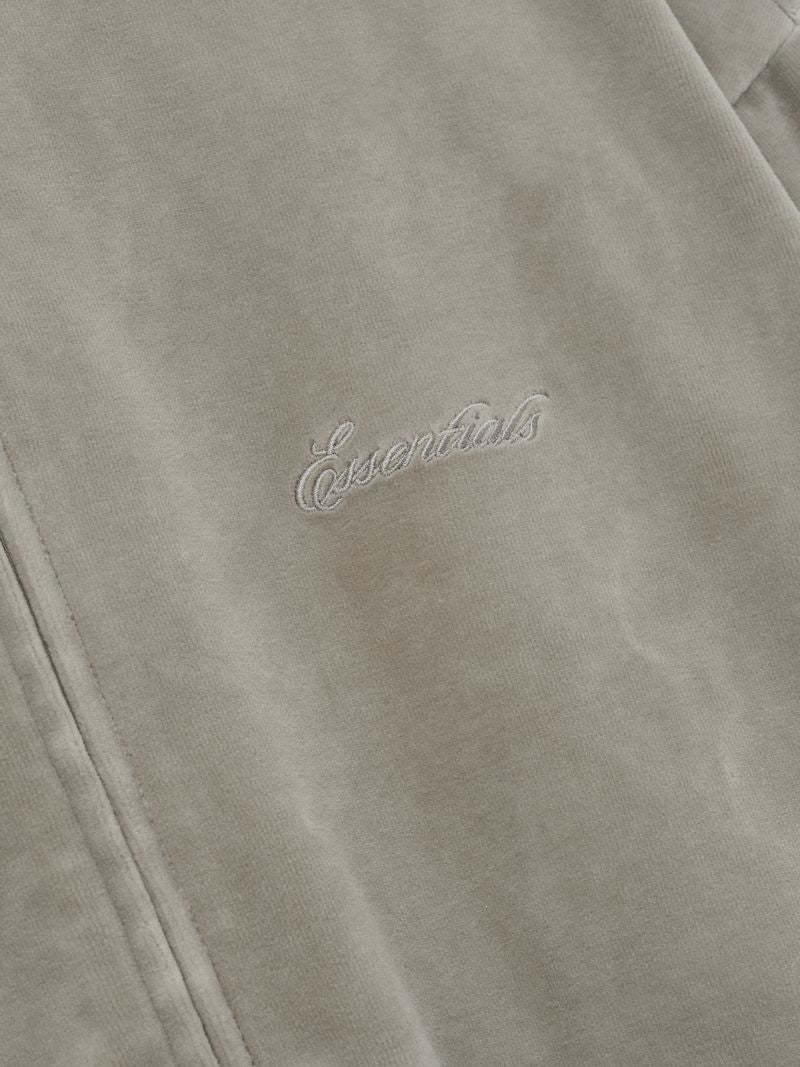 The Kids Classic Track Jacket is crafted from velvet velour for a plush, comfortable feel and cut in a relaxed silhouette. Branding includes an embroidered Essentials script logo on front. Finishing details include an high neck, full zip front, and rib-knit cuffs and waist hem. A Fear of God Essentials rubberized label stitched at the center front.