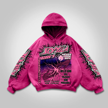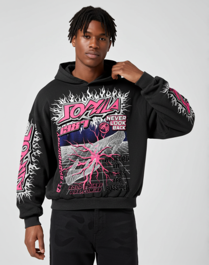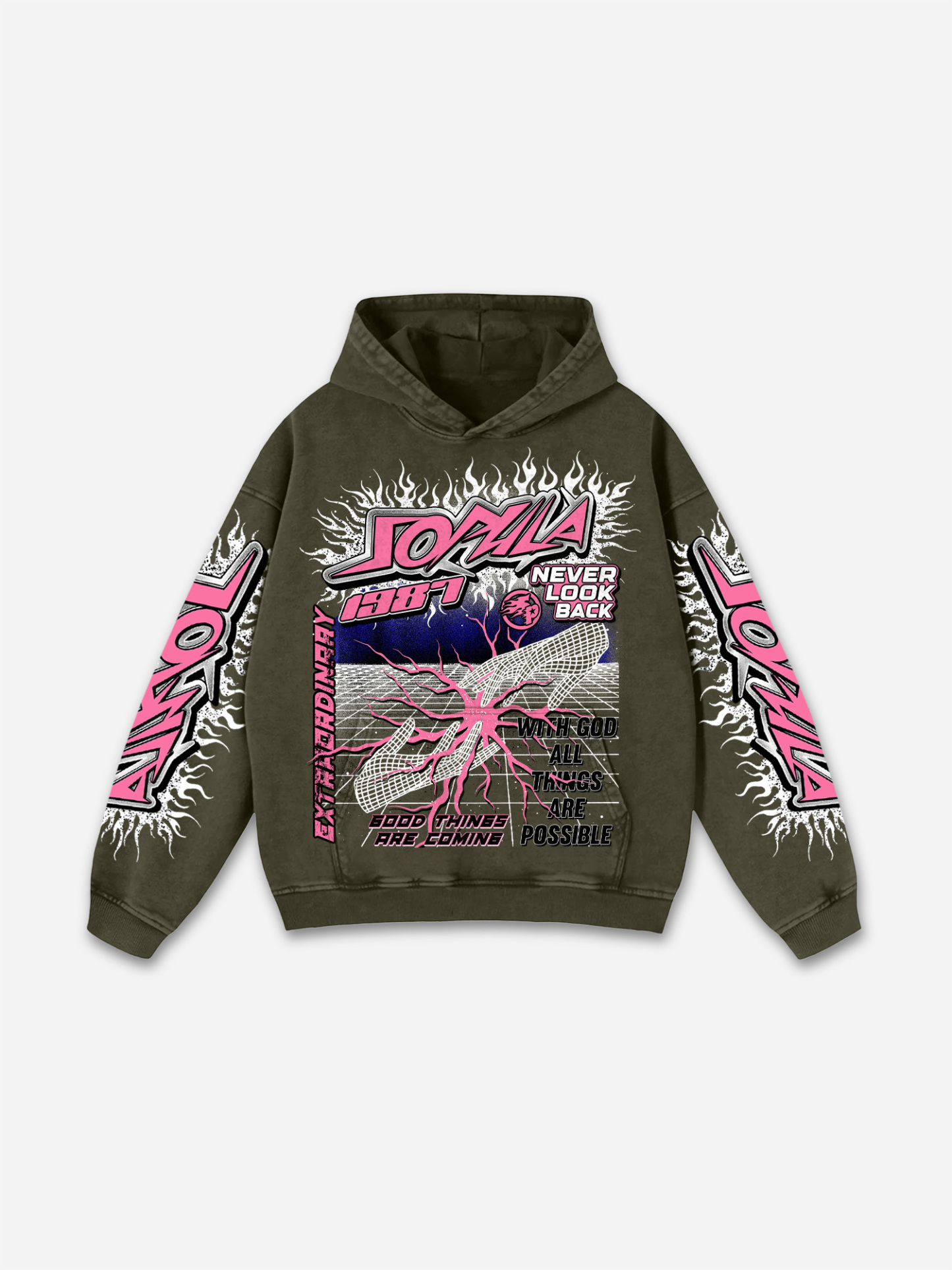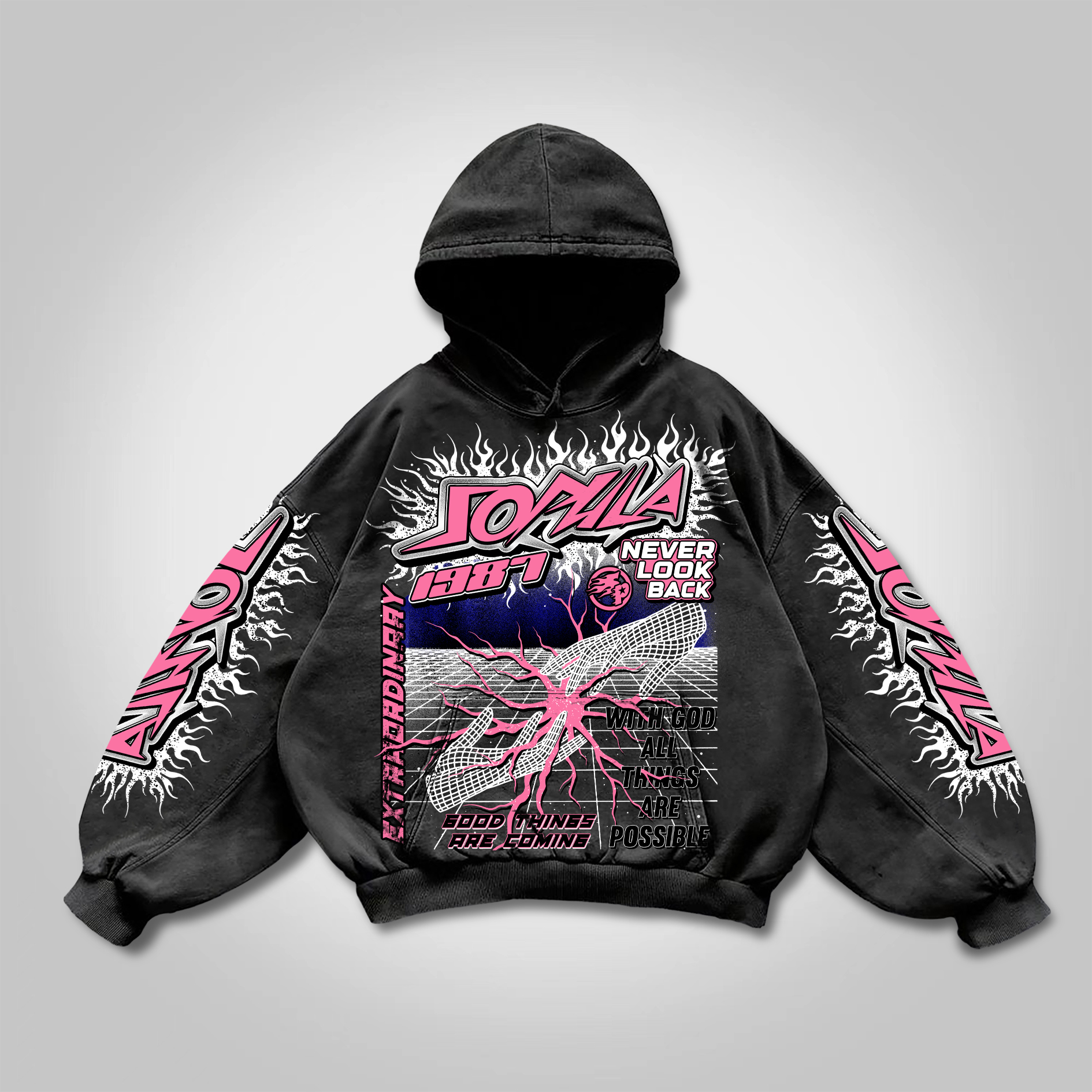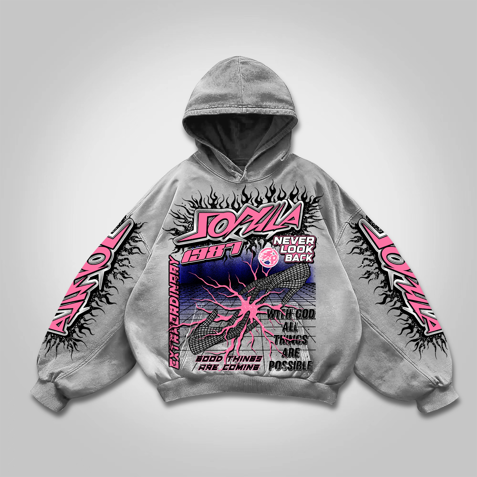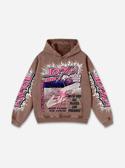Flame Font Network Connection Vintage Graphic Washed Hoodie