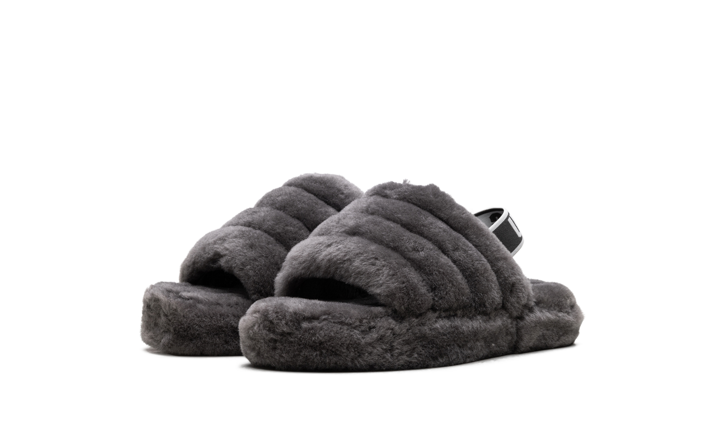 Unleash playful comfort with the UGG Fluff Yeah Slide PS "Charcoal." This Grade School-sized sandal delivers maximum coziness with its incredibly soft, fluffy construction in a versatile charcoal gray color. The plush upper and heel strap ensure a secure, comfortable fit, perfect for indoor lounging or making a bold, fuzzy statement outdoors. They're fun, fashionable, and feature the quality construction UGG is known for. Get ready for an instant mood boost with every step!