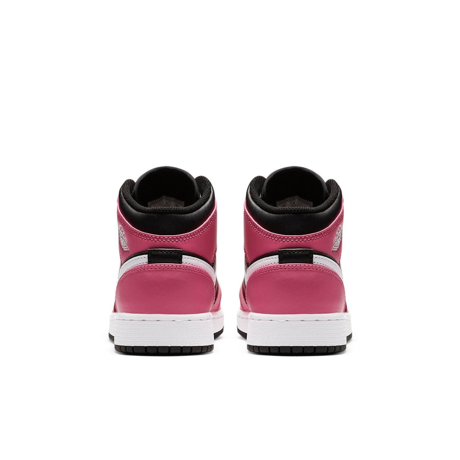 Nike Air Jordan 1 Mid GS Pinksicle This mid-top Air Jordan 1 comes dressed in a black, white and pinksicle color combination. Highlighted with black leather across the base while pink is applied to the overlays.