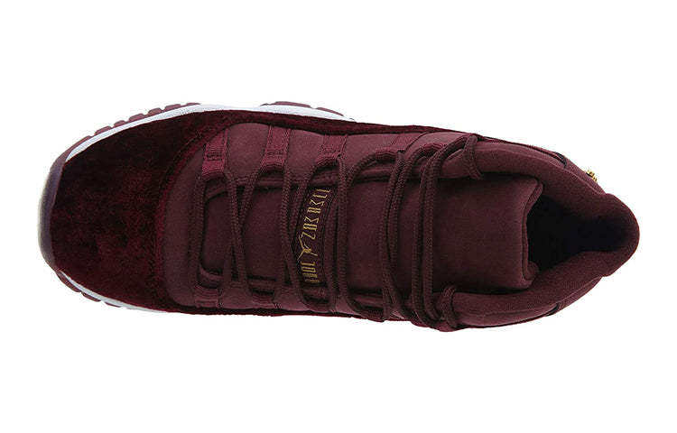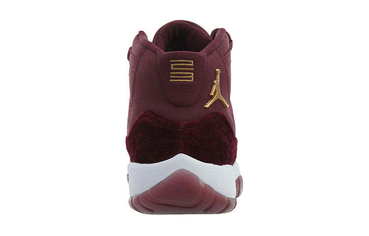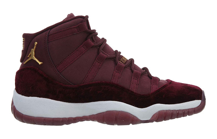 The Air Jordan 11 Retro GG Heiress 'Velvet' is a luxurious take on a classic sneaker icon. This shoe features a rich maroon upper made from soft nubuck, with a plush velvet overlay. Metallic gold accents add a touch of luxury to the branding elements, including the molded Jumpman logo and embroidered '23' on the heel tab. The Phylon midsole provides cushioning and support, while the semi-translucent rubber outsole ensures durability. Whether you're hitting the court or the streets, this shoe is sure to turn heads.