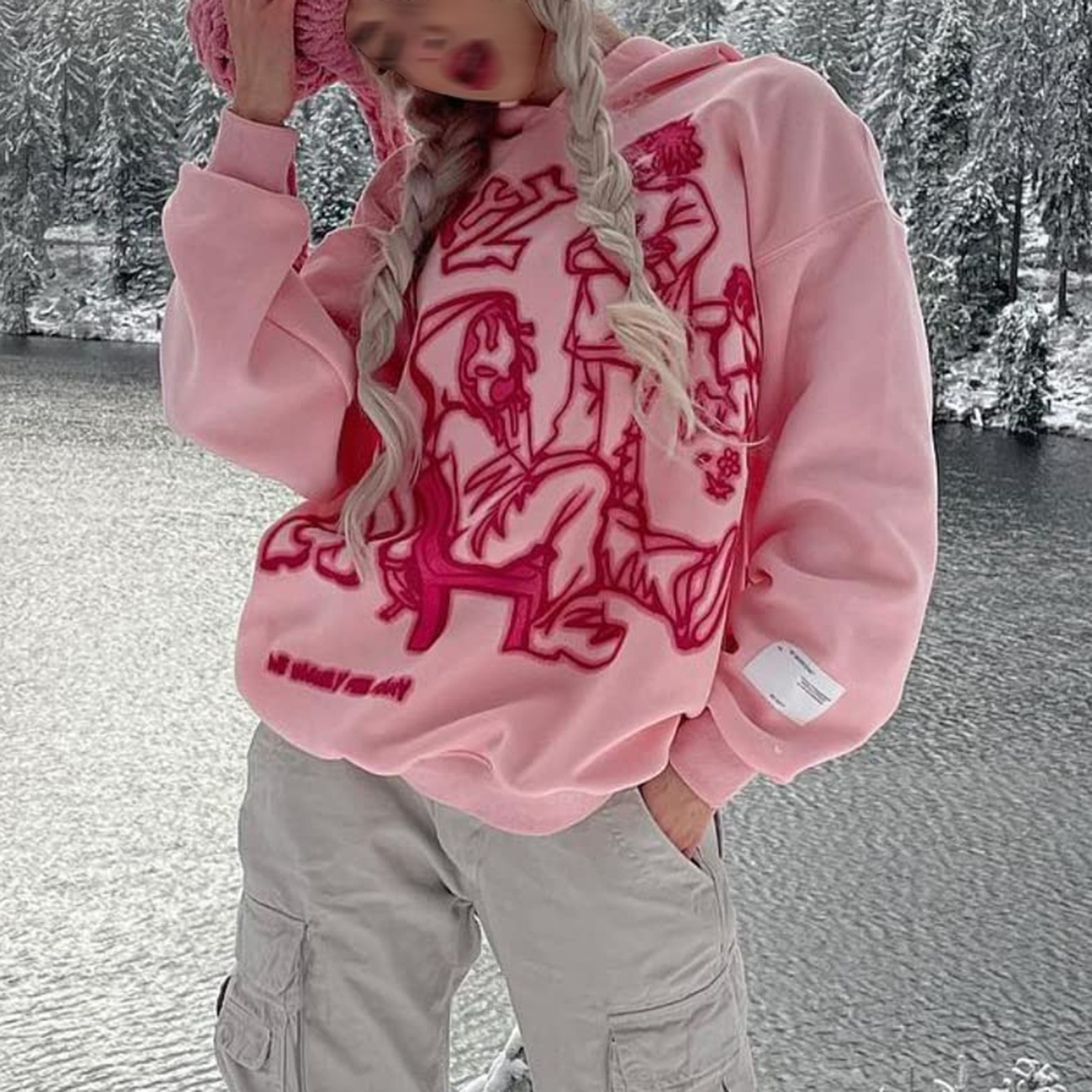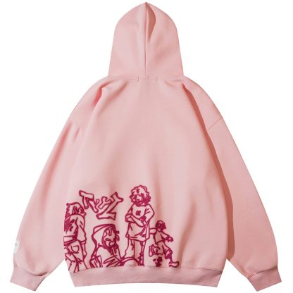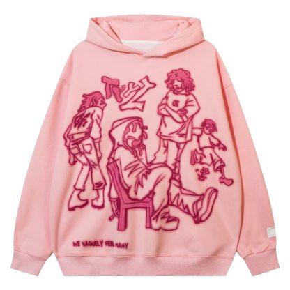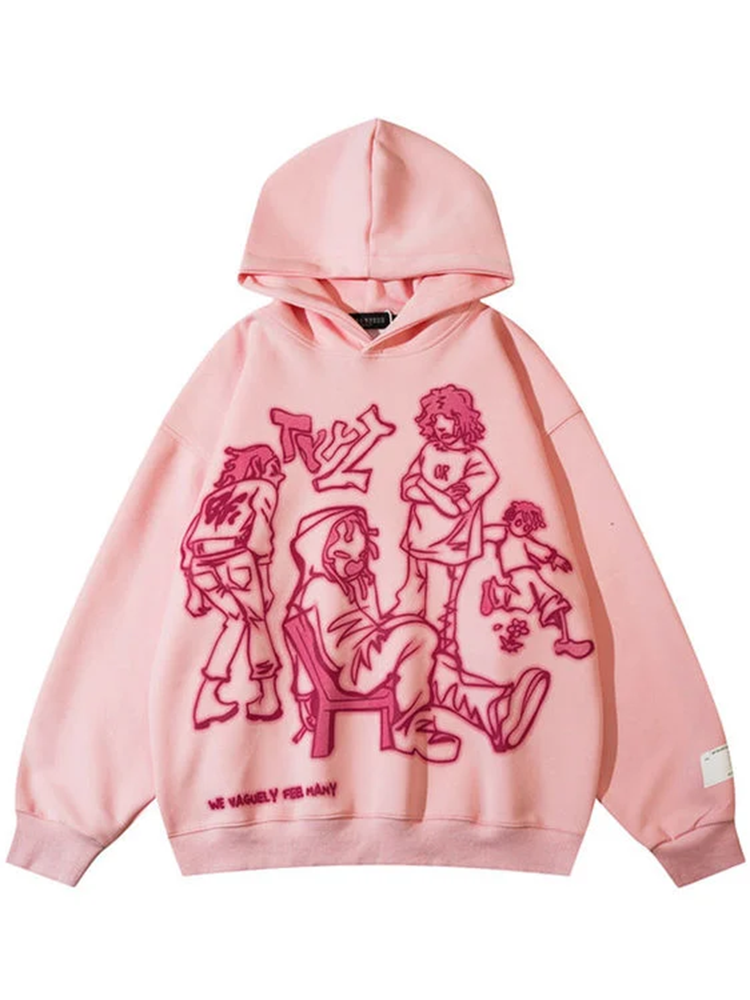 Hip Hop Cartoon Alphabet Print Loose Hoodie