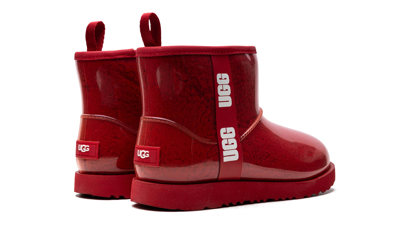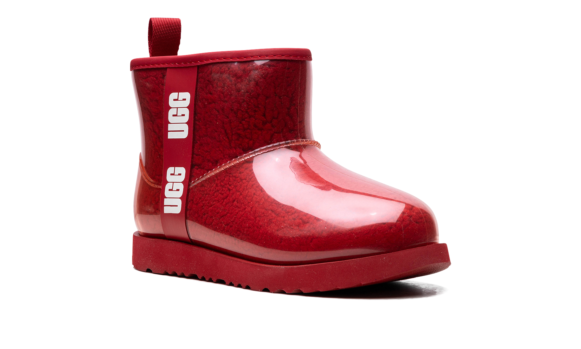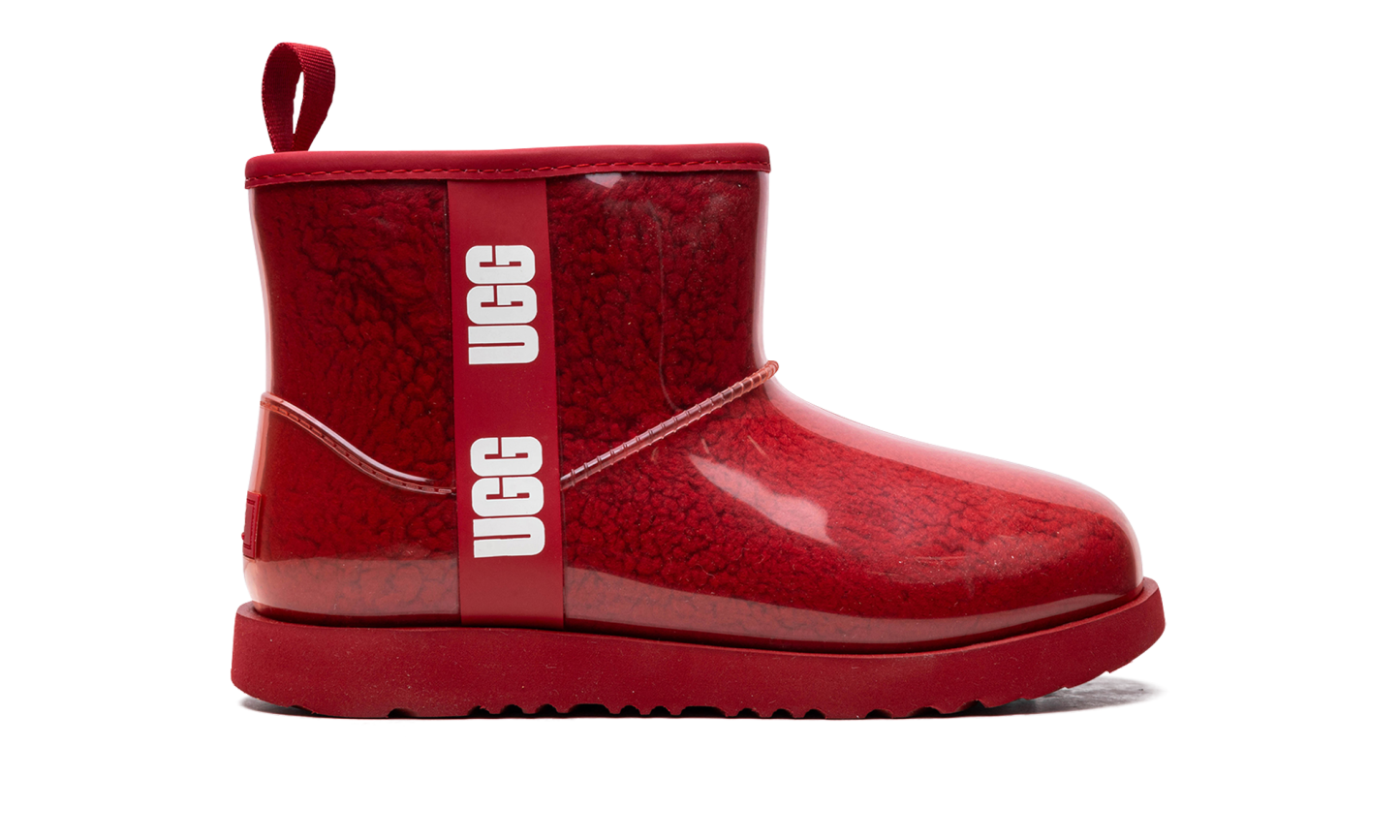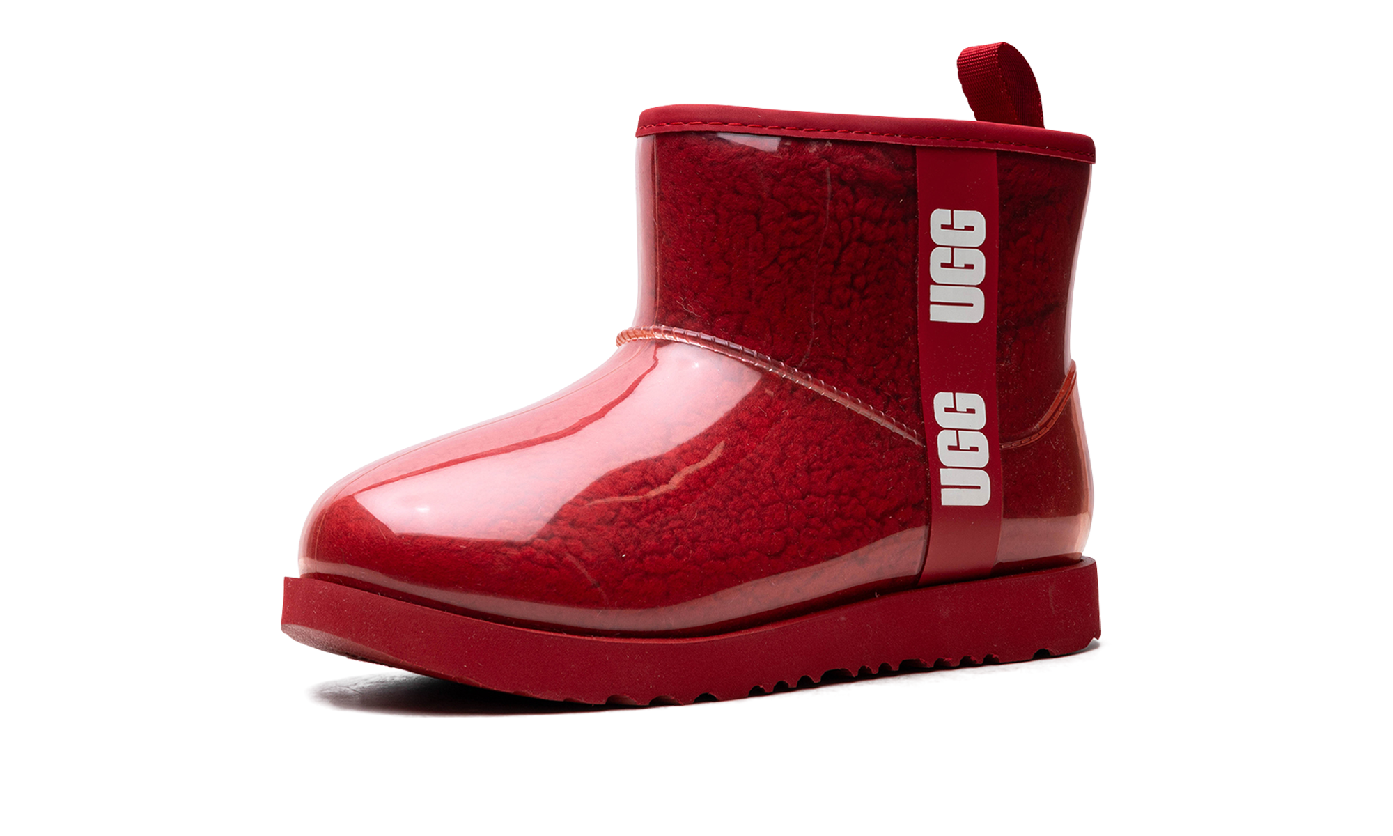 Make a playful splash with the UGG Kids Classic Clear Mini "Red," the undeniable 'Rainy-Day Pop!' This boot gives kids the best of both worlds: a clear, waterproof TPU outer shell that showcases the cozy curly faux shearling and UGGplush™ lining inside. It's built to withstand heavy rain and snow, rated for temperatures as low as -20°C (-4°F). Lightweight and equipped with a durable Treadlite by UGG™ outsole, this bright red boot delivers cozy warmth and traction for every puddle-jumping session!
