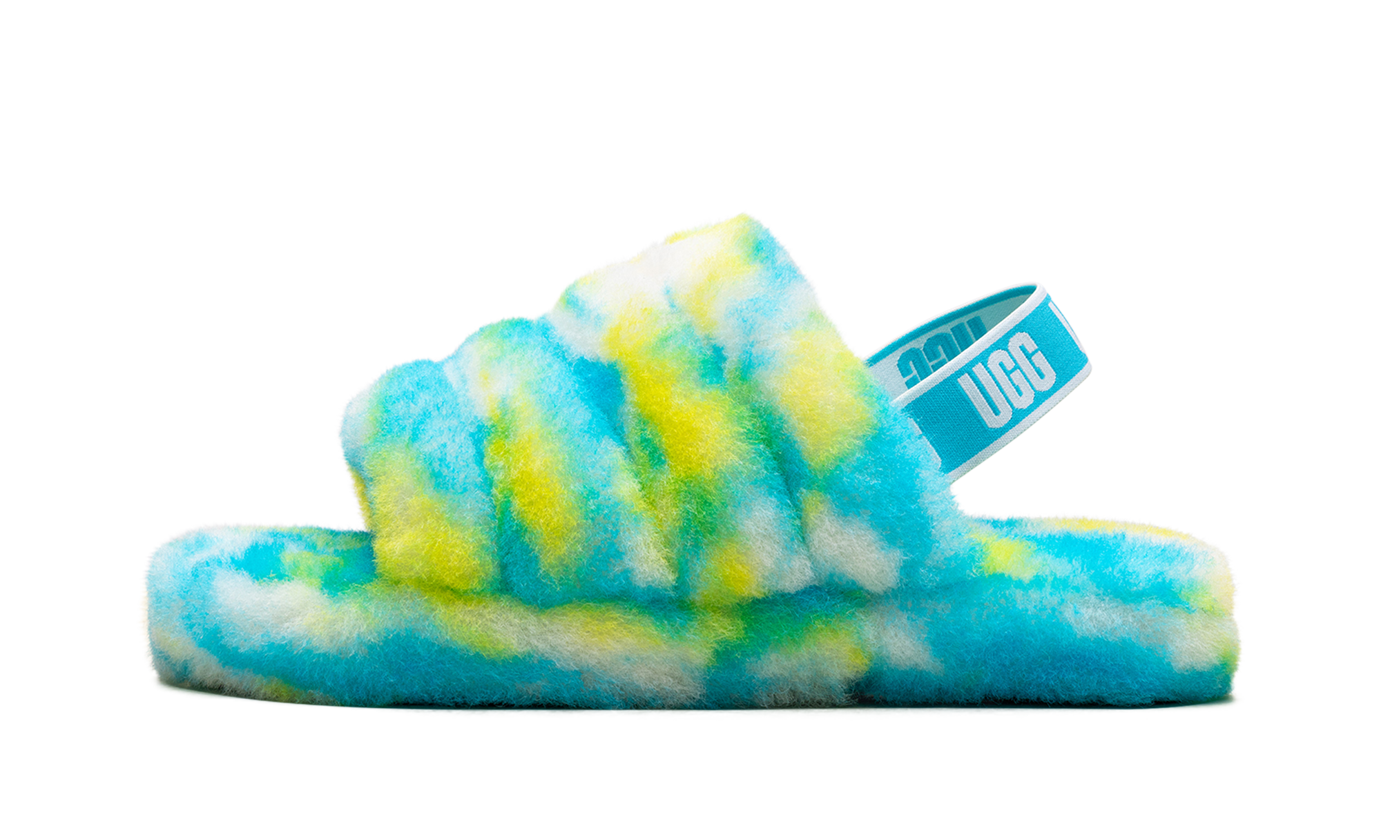 Get ready for fun and fabulous footwear with the UGG Kids FLUFF YEAH SLIDE "Green." These are not your average slippers; they are a hybrid of a sandal and a slide, offering the best of both. Crafted with super soft plush sheepskin in a vibrant "Green" hue, they keep feet cozy and chic. The elastic logo strap ensures a secure fit, while the durable platform outsole makes them perfect for playing indoors and out. Give little feet the gift of style and unparalleled comfort!