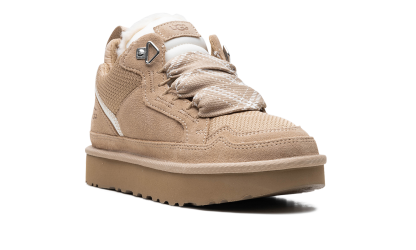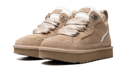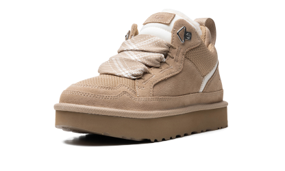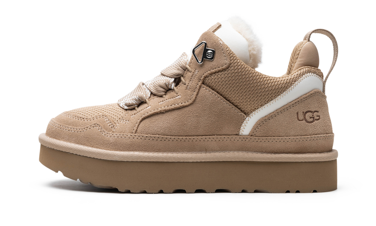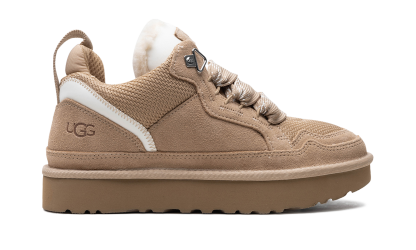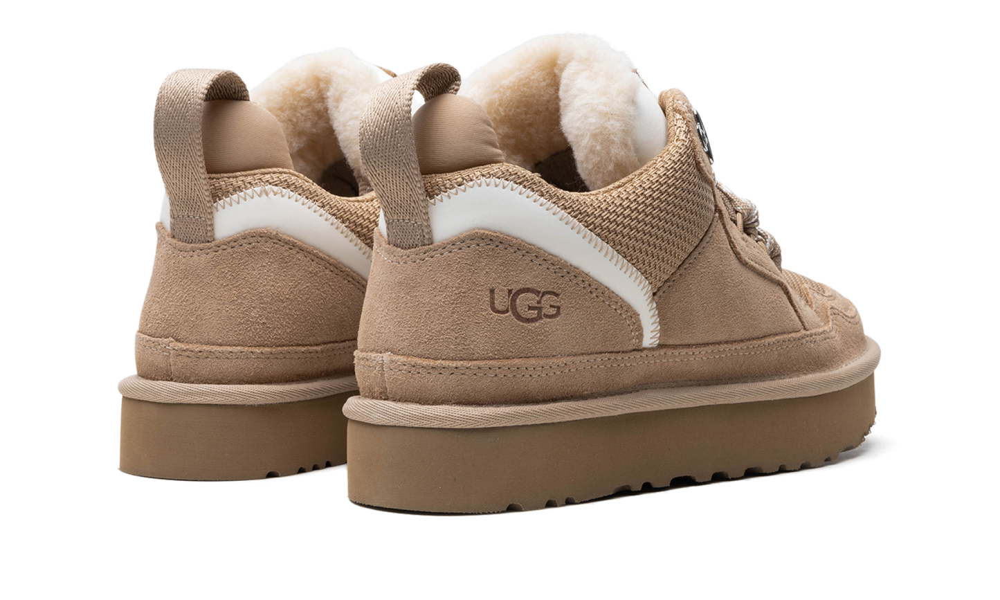 Embrace the cozy-cool sneaker trend with the UGG Lowmel WMNS "Sand" shoe. This women's model features a soft suede and recycled ballistic canvas upper in a beautiful neutral sand tone. It delivers signature UGG comfort with a plush upcycled wool lining and a flexible SugarSole™ EVA outsole. The lace-up sneaker-boot design with oversized laces gives it a fresh, West Coast-inspired vibe. You'll feel excited and confident making this stylish choice!