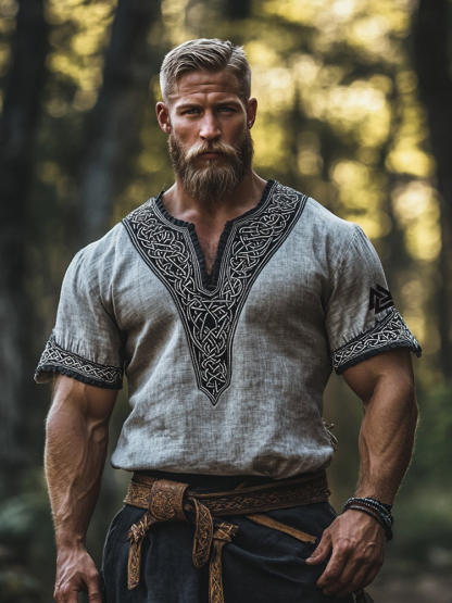 Men's Vikings Celtic Knot Totem Linen Blend Shirt