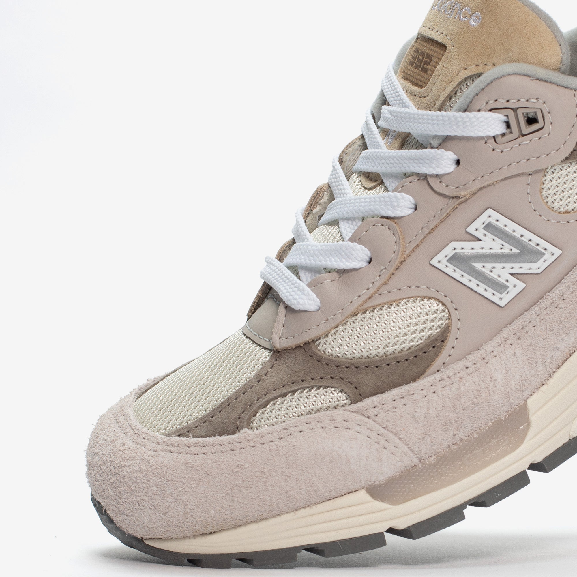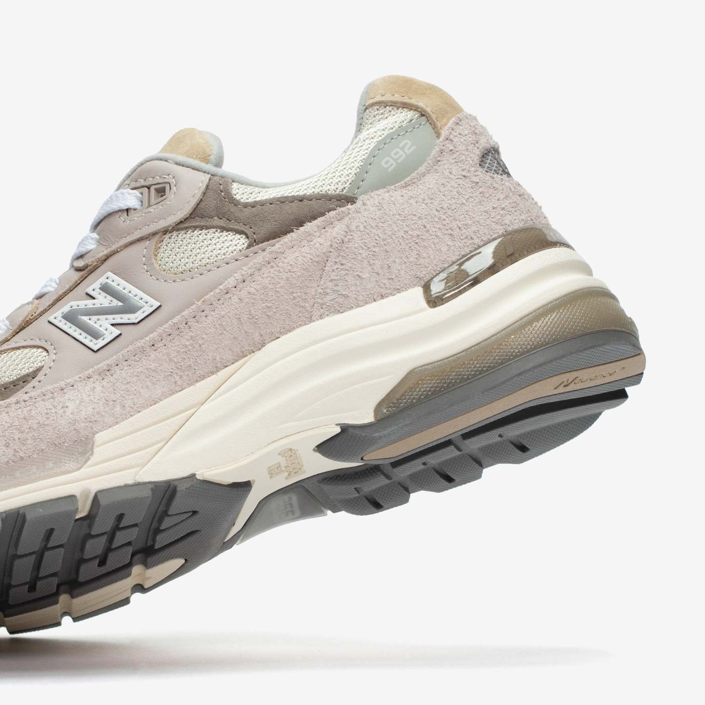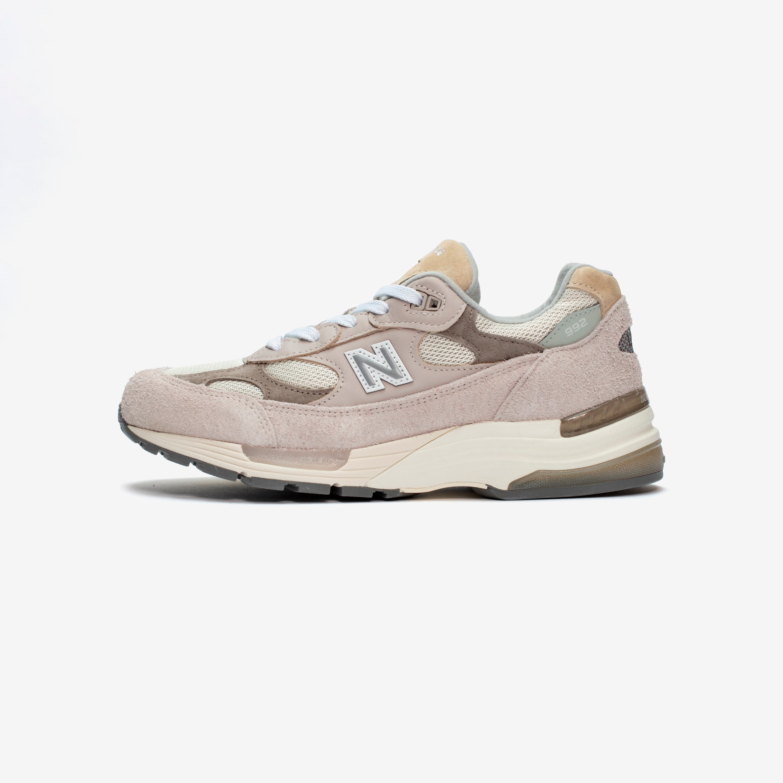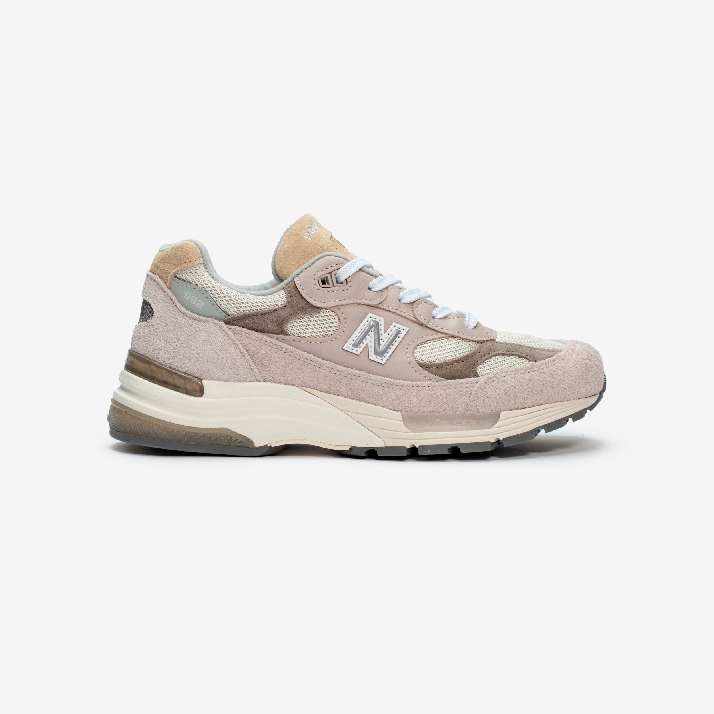 The legendary New Balance 992 returns to the Made in USA Collection with this brand-new, summer-ready "White" colorway, bringing a premium touch to a fan-favorite silhouette. A premium material mix featuring hairy suede, mesh, suede, and leather sports a light shade of grey, moonrock, with earthy mushroom accents, while the ABZORB cushioning at heel and forefoot and NDurance rubber outsole offer complete comfort.