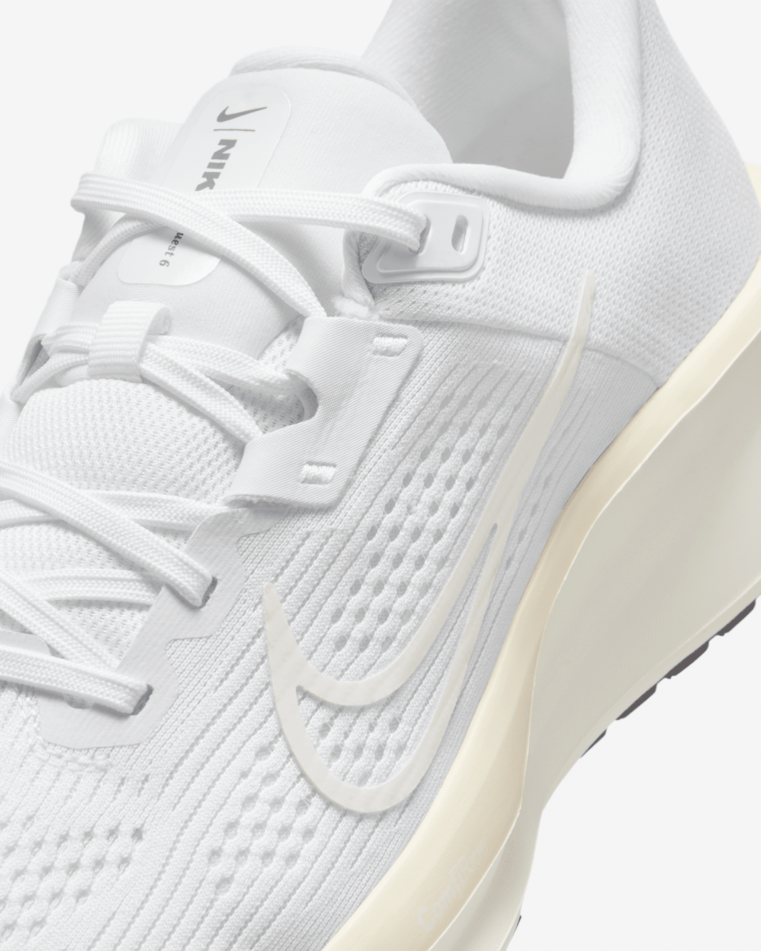 The Nike Quest 6 is for runners of all levels. But make no mistake, it's anything but entry-level. A supercomfortable and supportive midfoot fit band helps keep you stable for your miles. Plus, a supersoft midsole foam helps cushion each step.