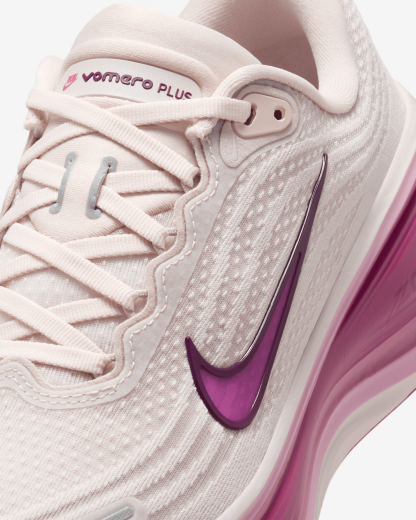 Take maximum cushioning to the next level with the Vomero Plus. It provides an ultra-comfortable ride for every day runs thanks to a mountainous stack of full-length ZoomX foam, the most responsive foam in the industry. Plus, the engineered mesh upper is made of soft, breathable yarn for a comfortable fit.
