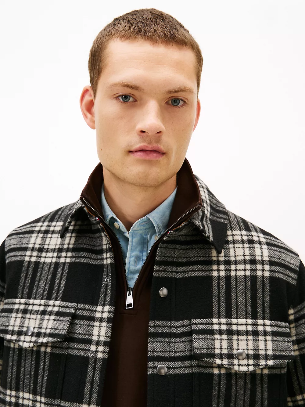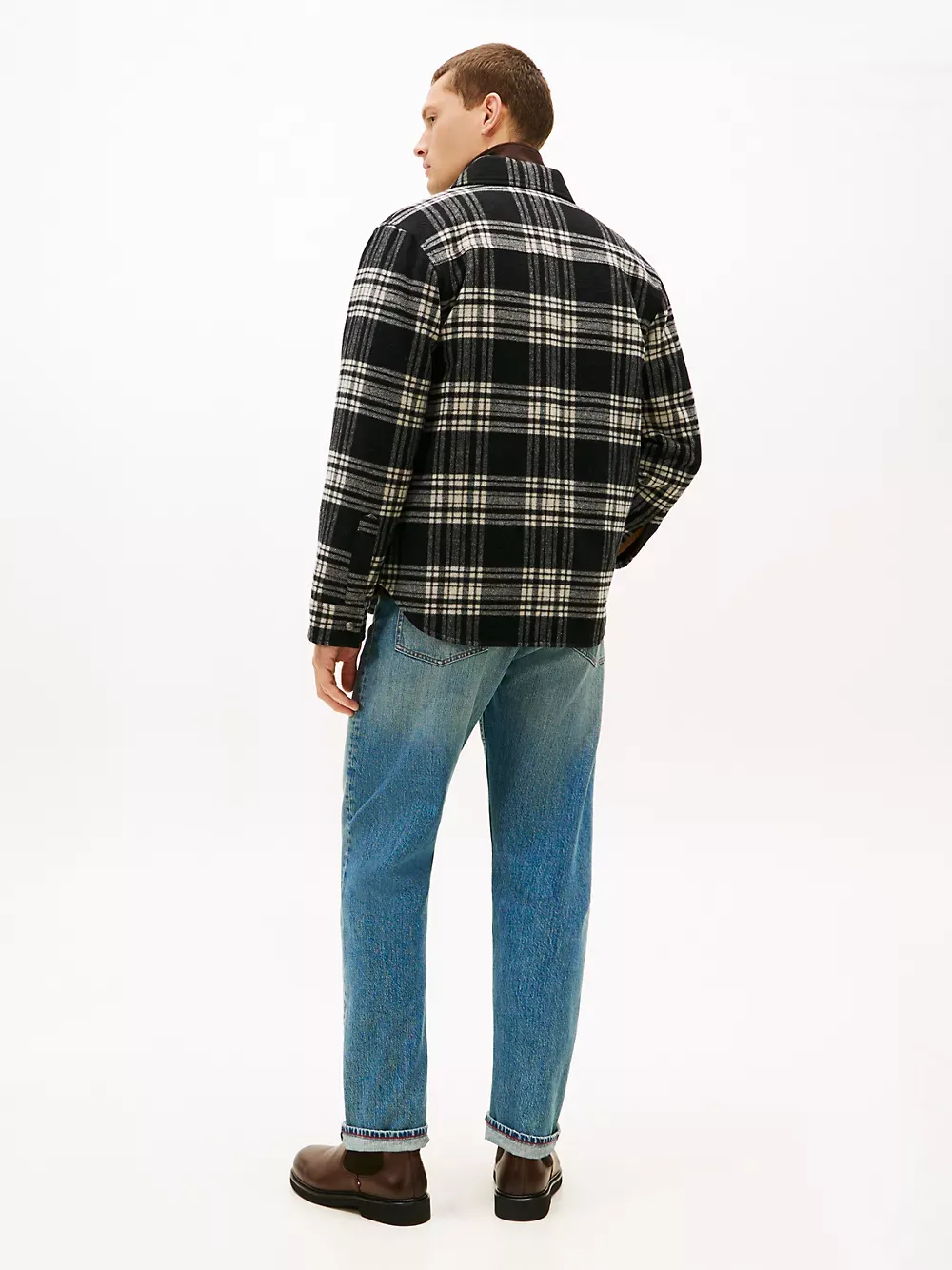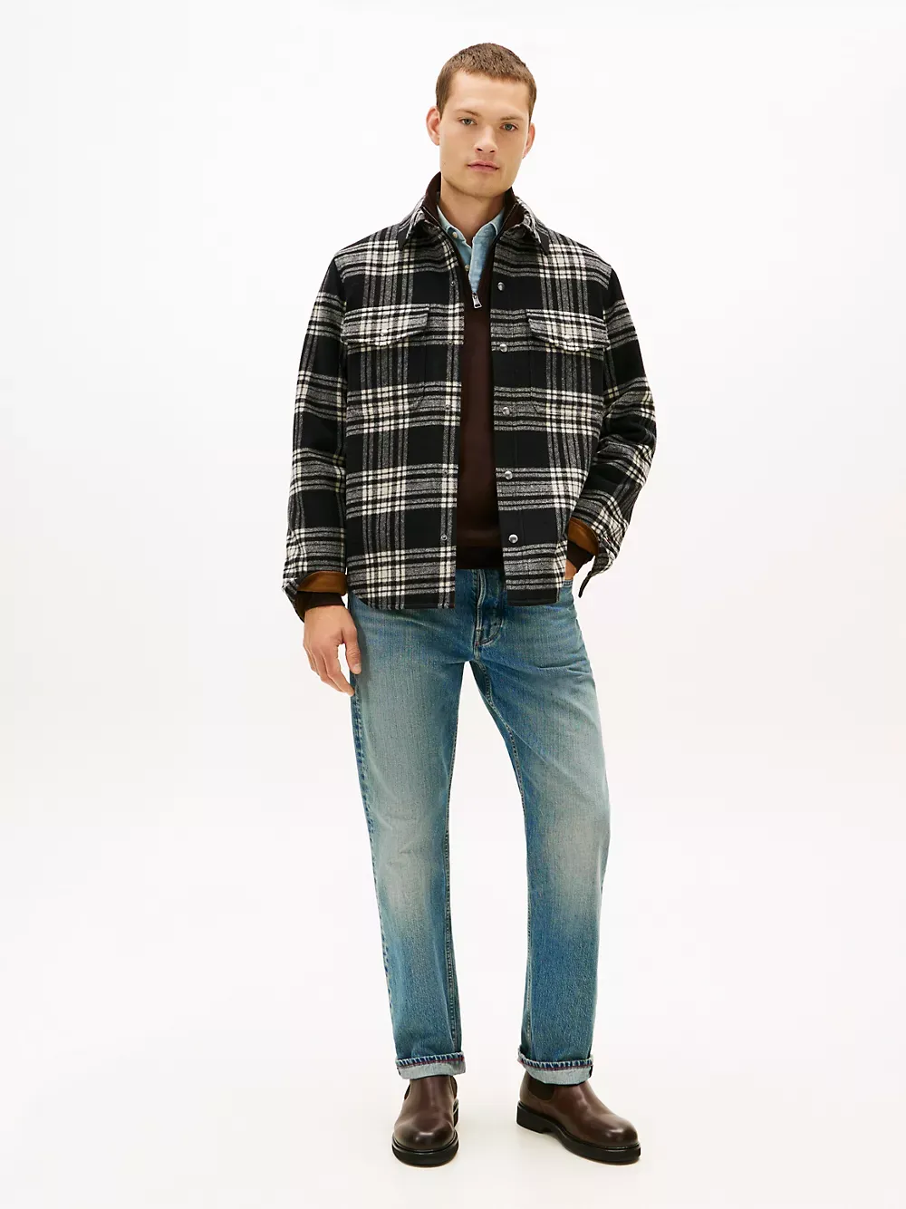 Tommy Hilfiger men's jacket. Our wool-blend shirt jacket is designed with padding for extra warmth. Finished in a seasonal plaid print, it's a versatile layering piece for the colder months.