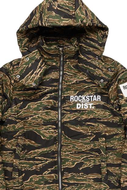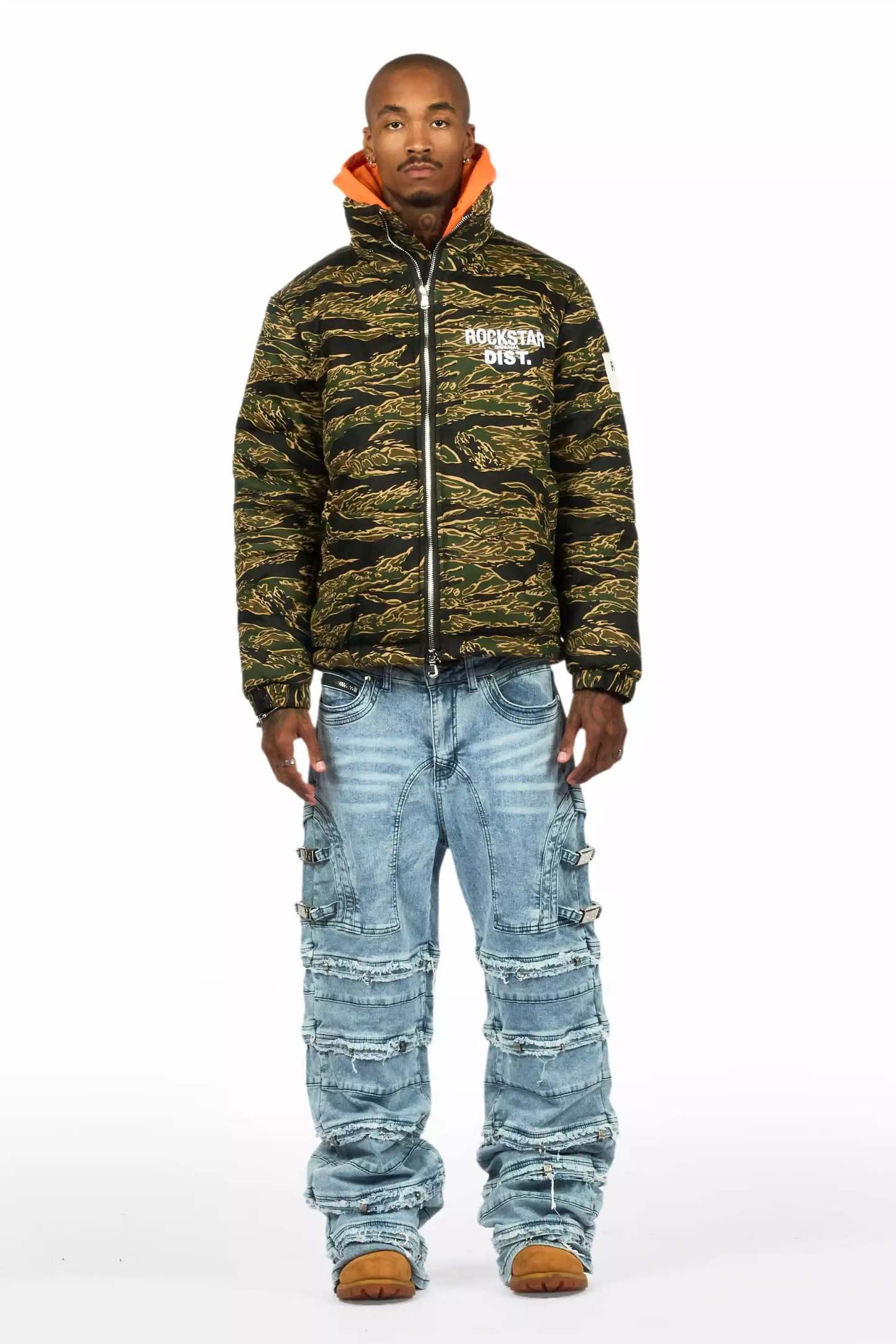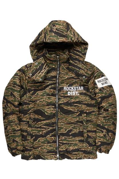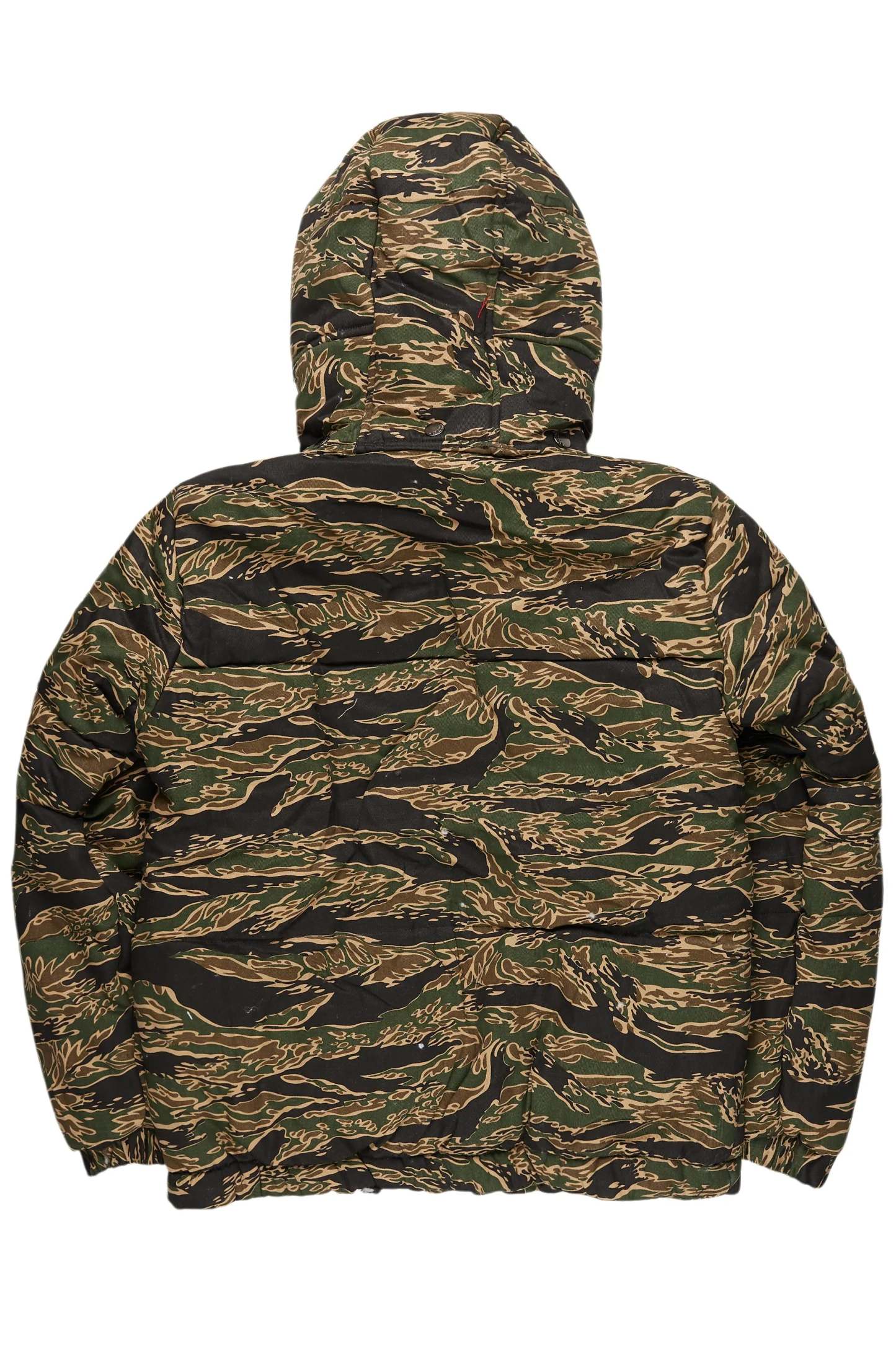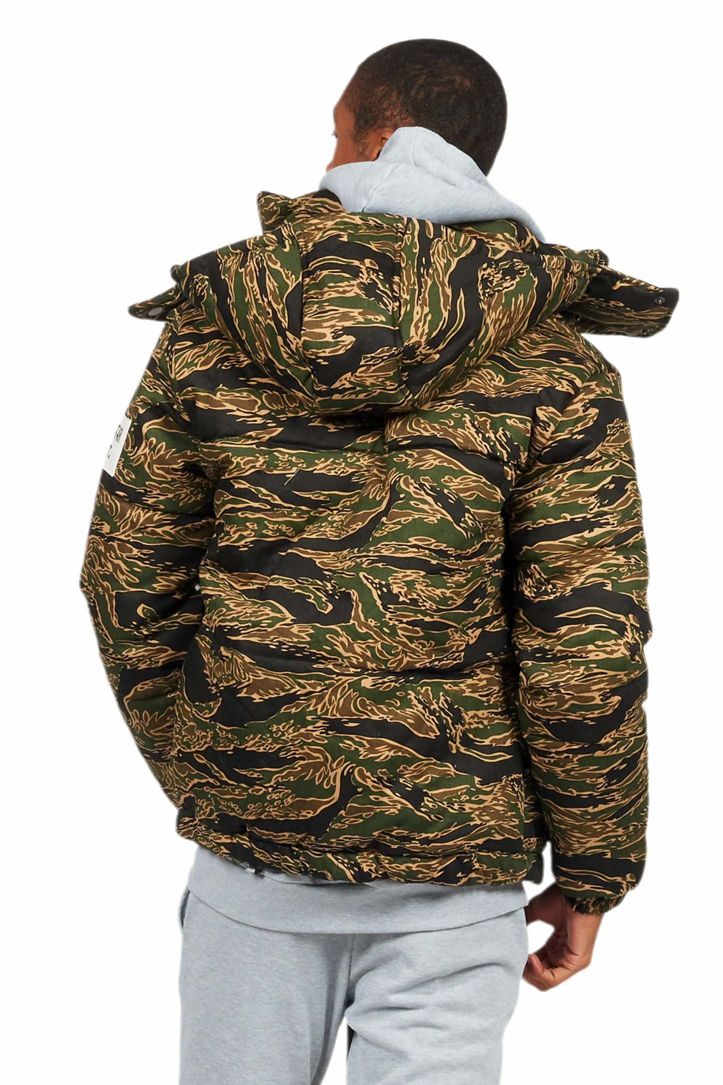 An urban quilted puffer jacket for men in camo. Designed with water-resistant fabric for optimal warmth.