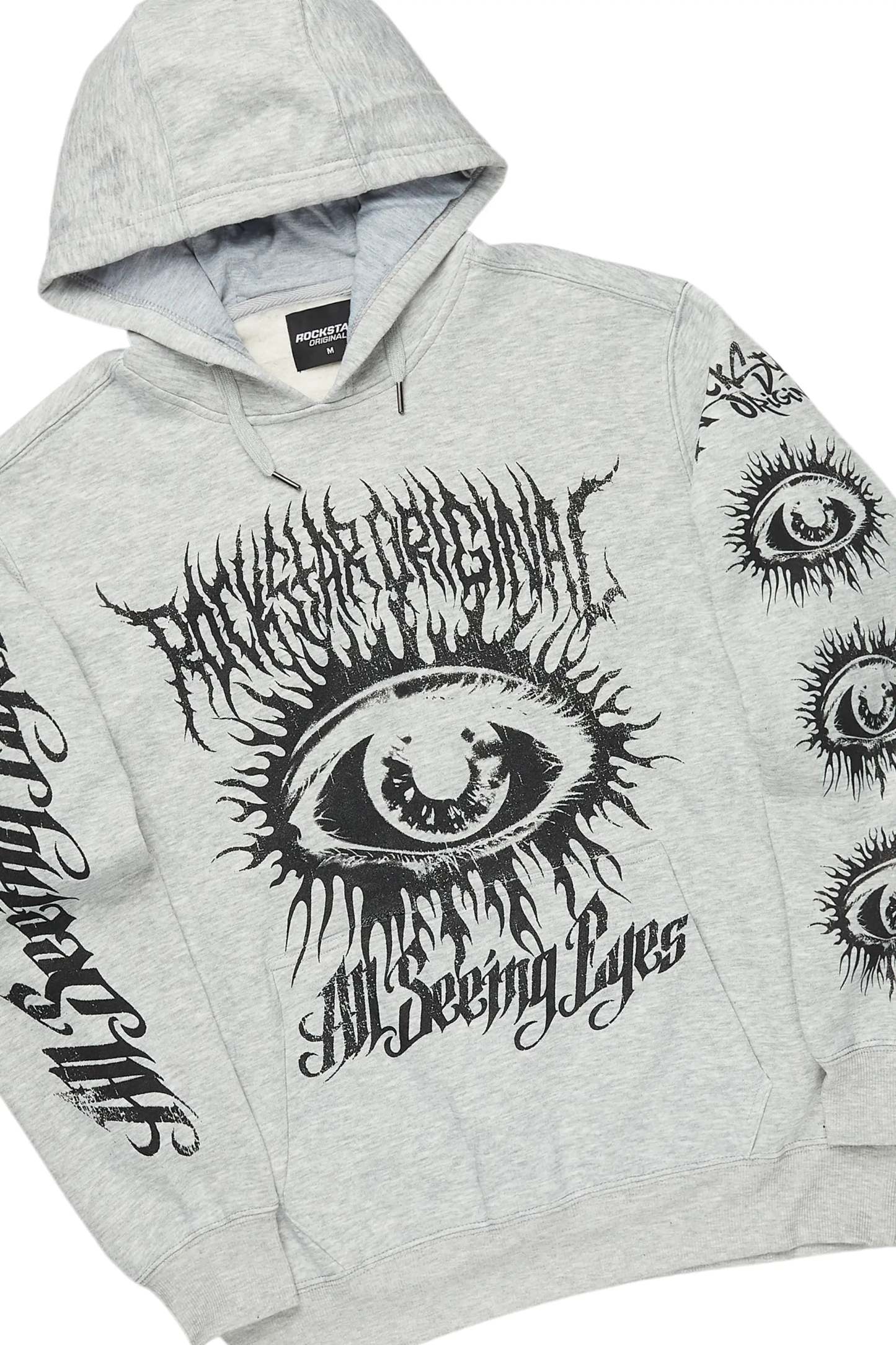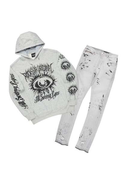 All Seeing Eyes Grey Hoodie/Stacked Flare Jean Set