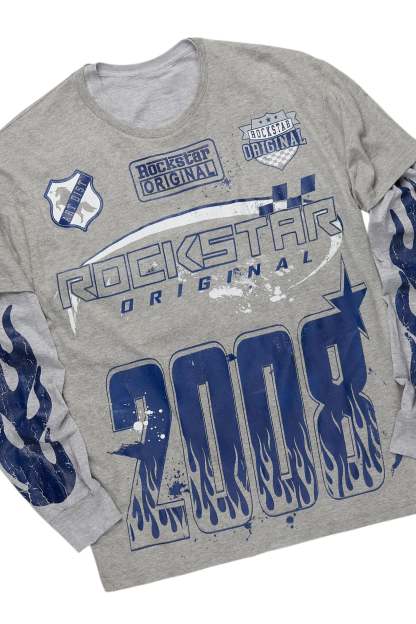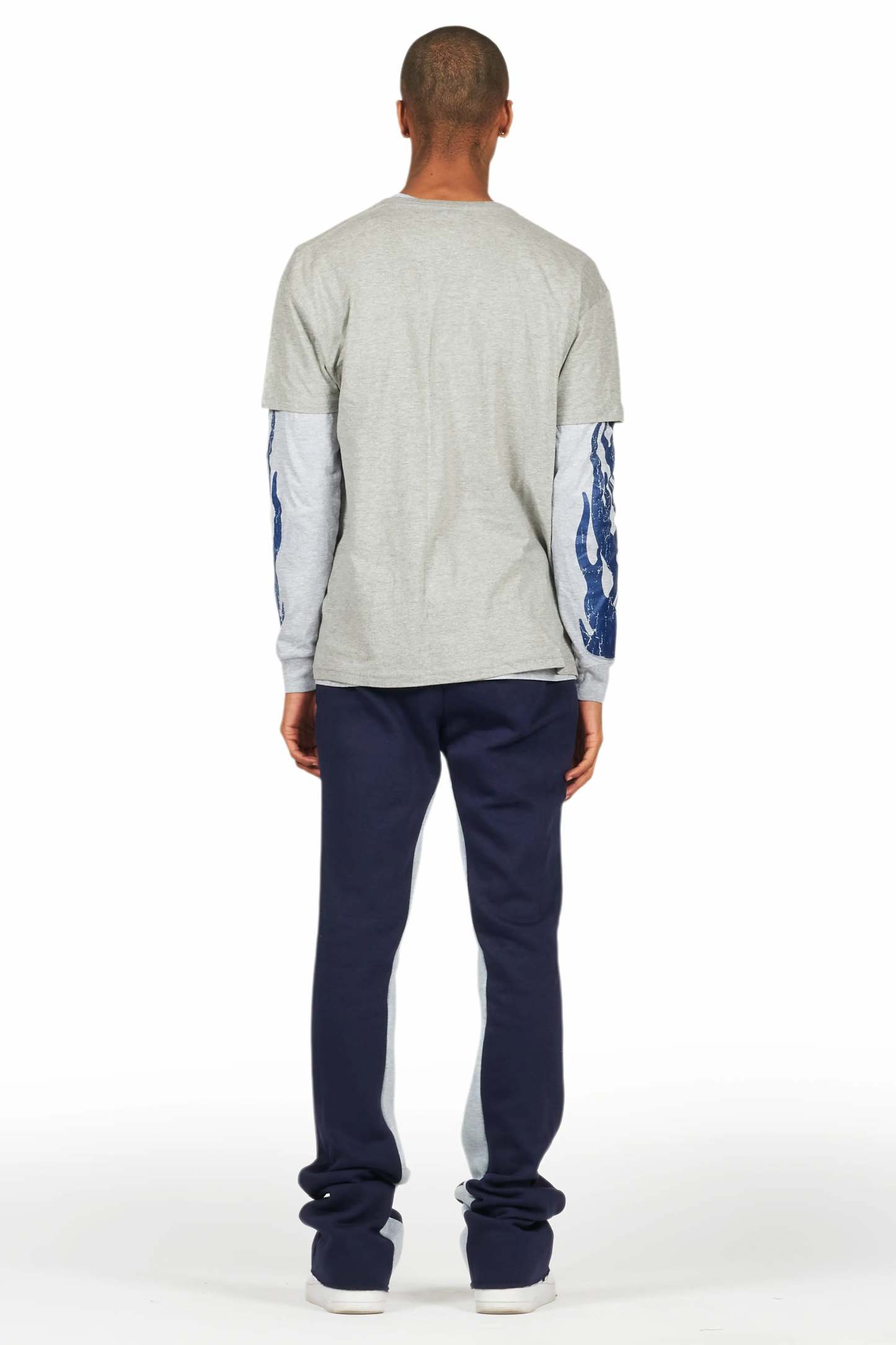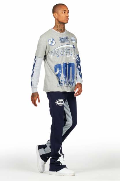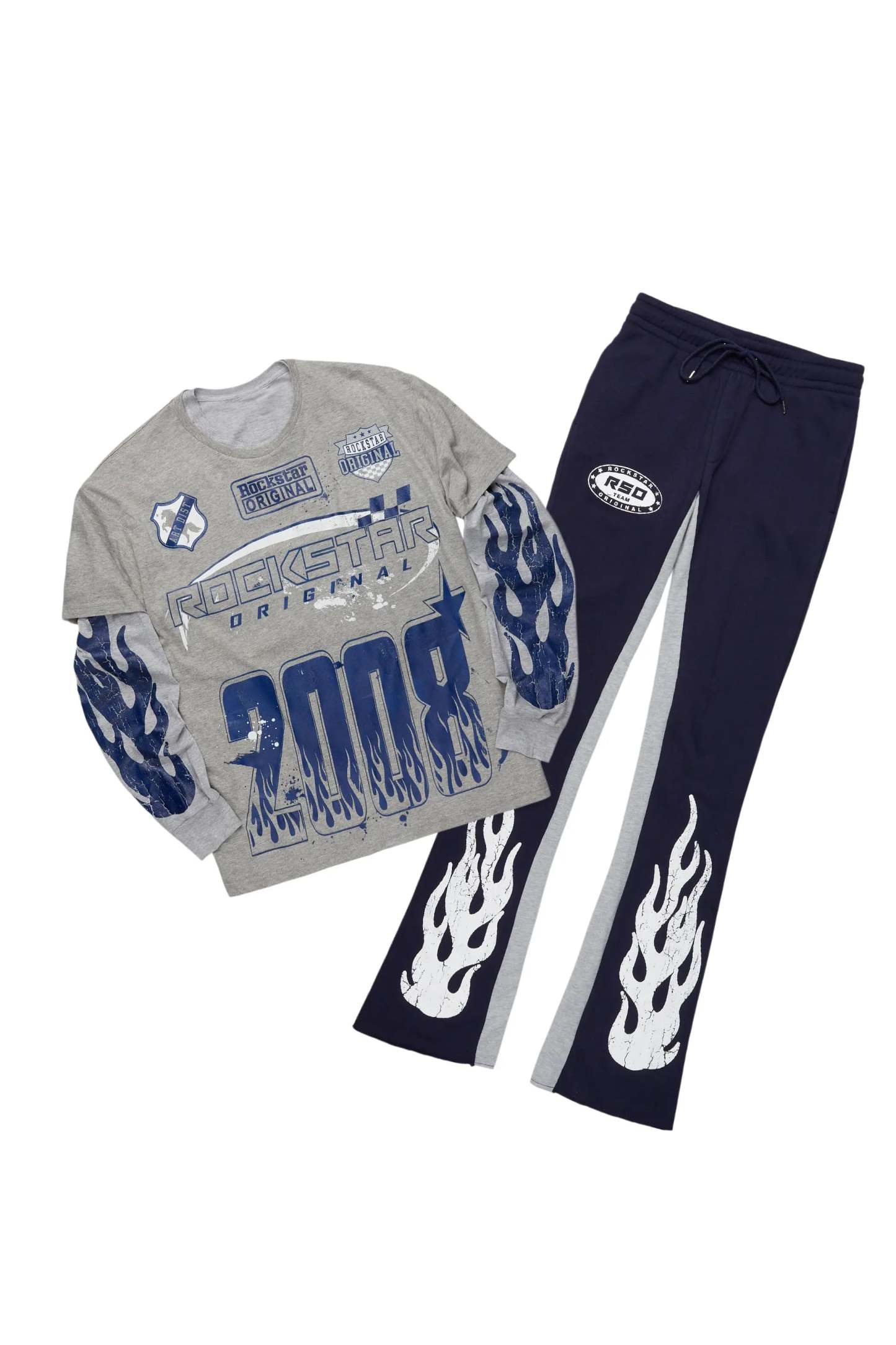 An urban two-piece double layer tee and baggy stacked track pant set for men. Designed with organic cotton and extra long legs for a dope streetwear outfit set.
