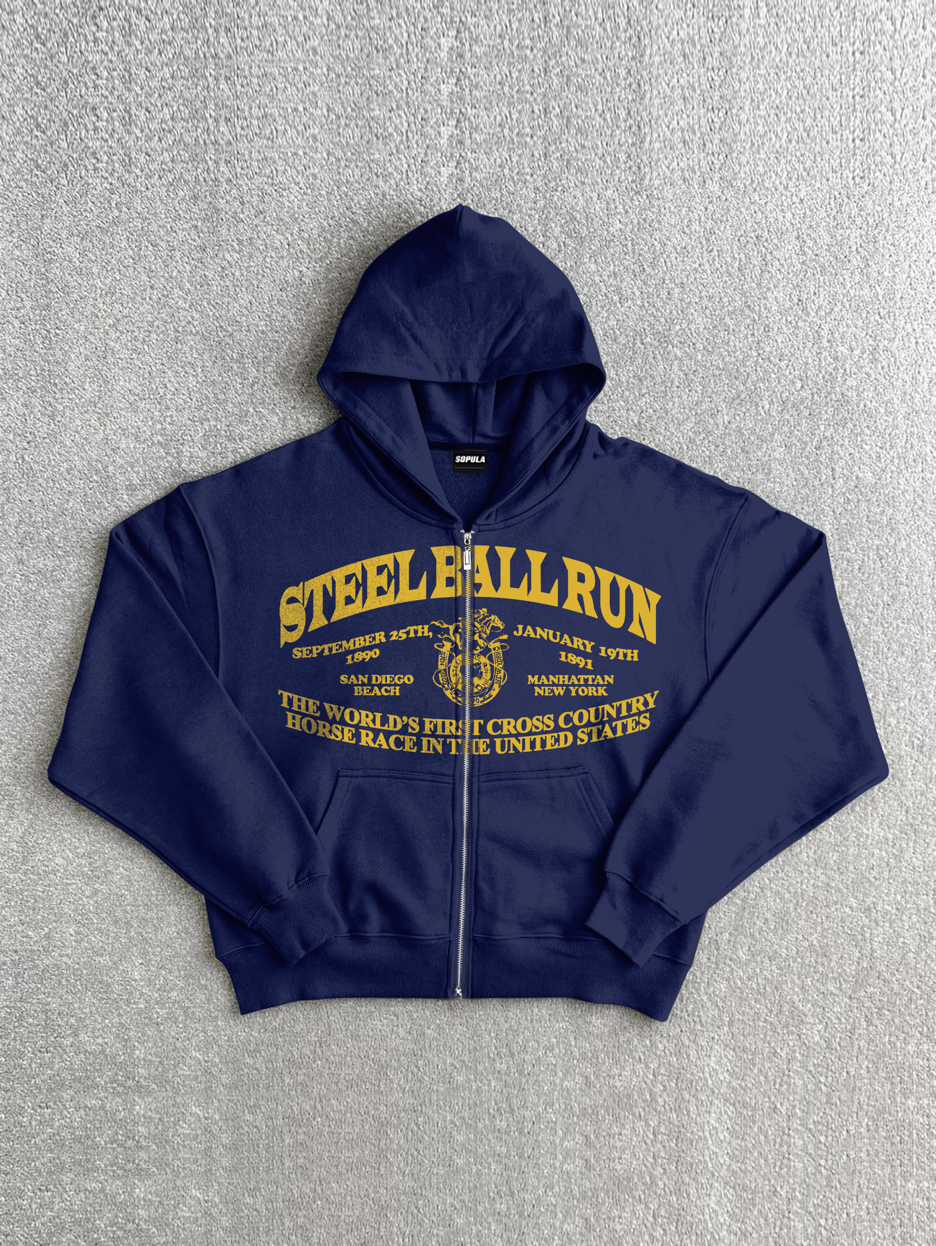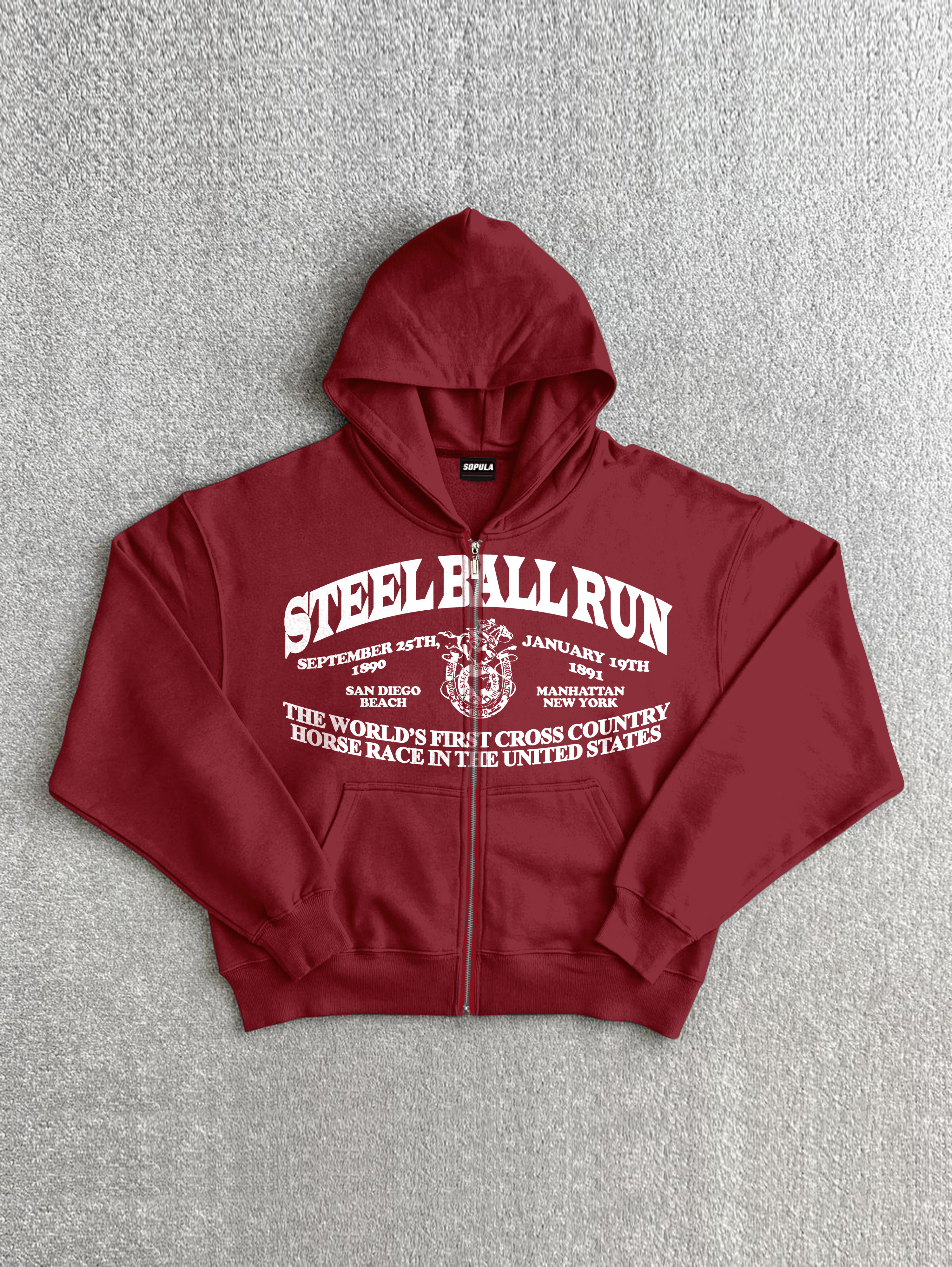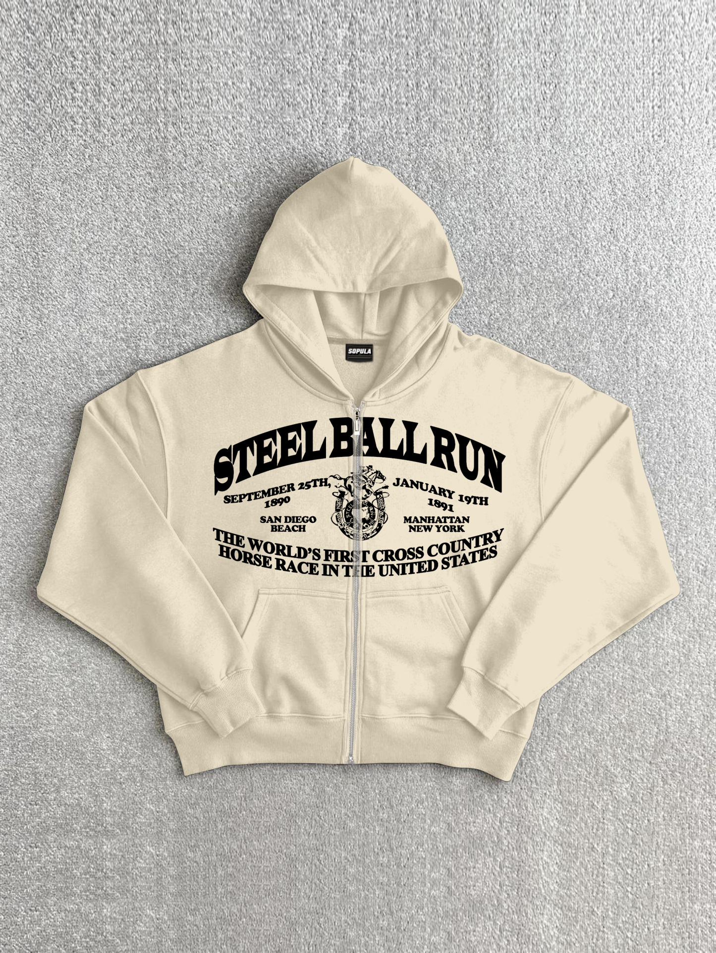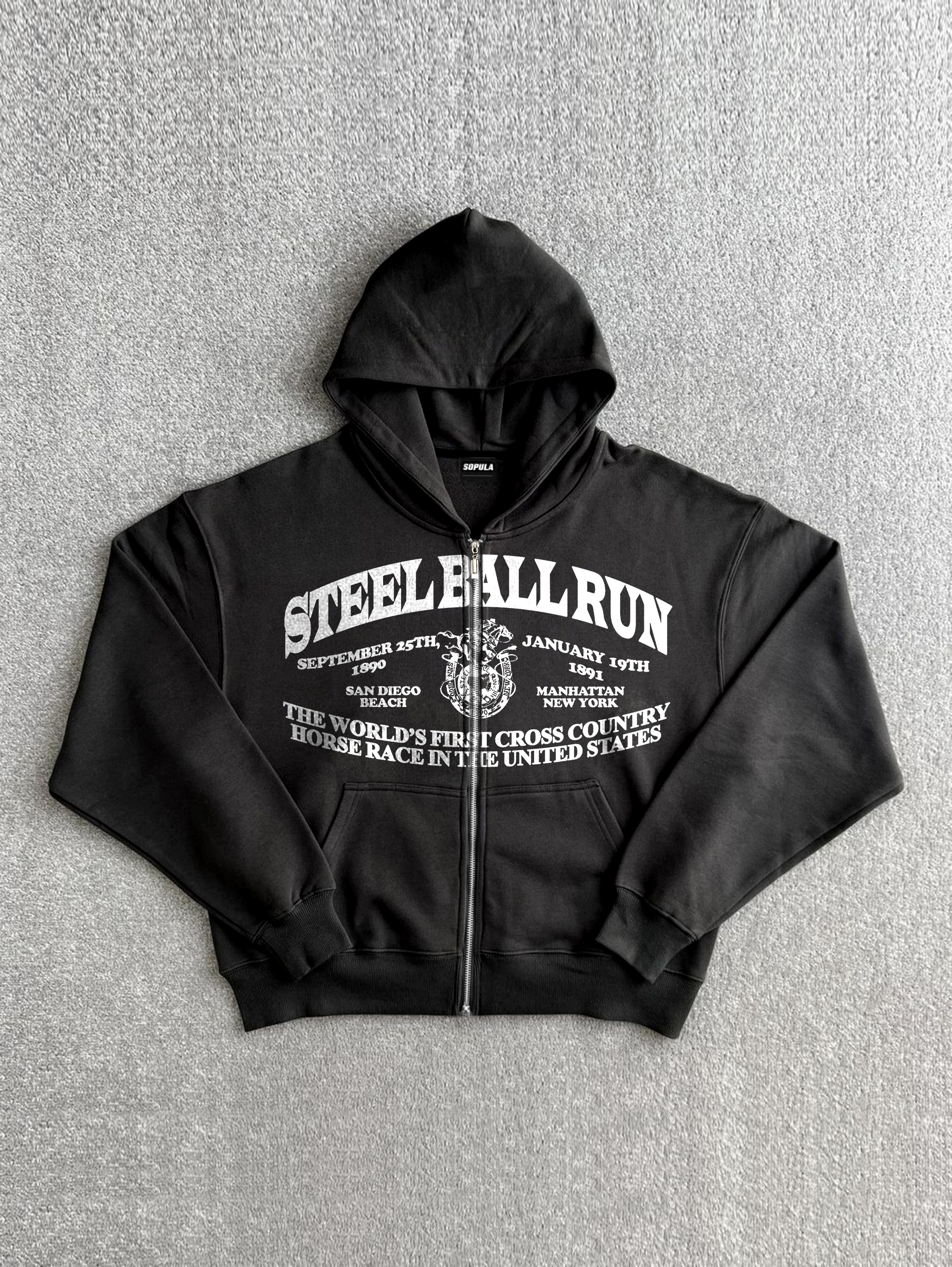 “steelballrun” Letter Print Graphic Zippered Hoodie