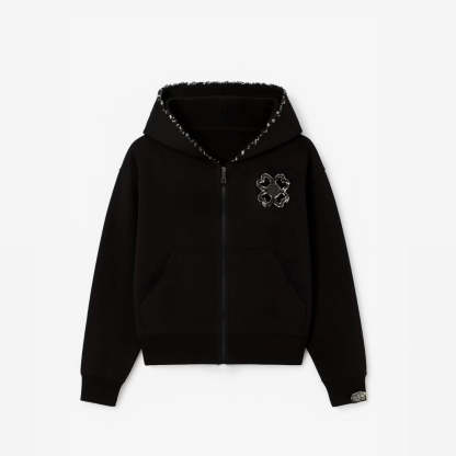 Its oversized fit, signature clover emblem, and precisely finished details make it a refined yet modern piece — ideal for expressing confidence with ease.