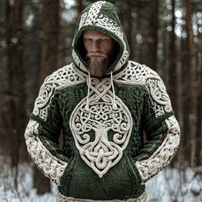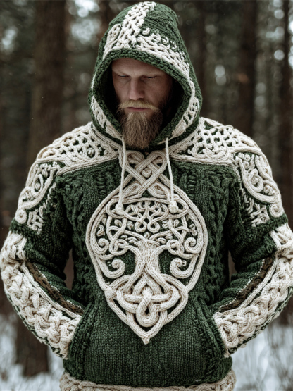 Viking Celtic Tree Knit Art Men's Hooded Sweater