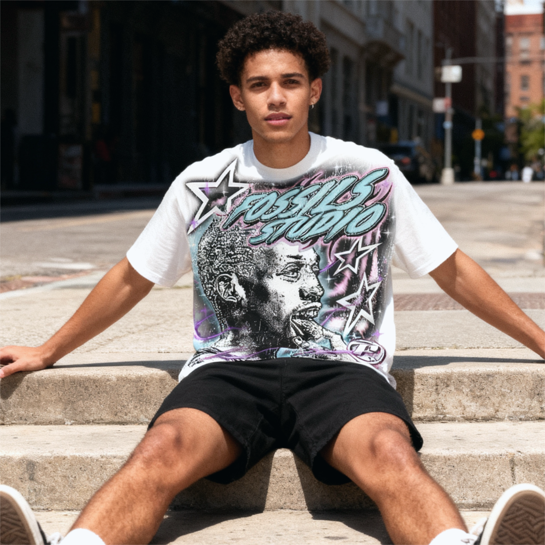 Vintage Basketball Legend Graphic 100% Cotton White Short Sleeve T-Shirt