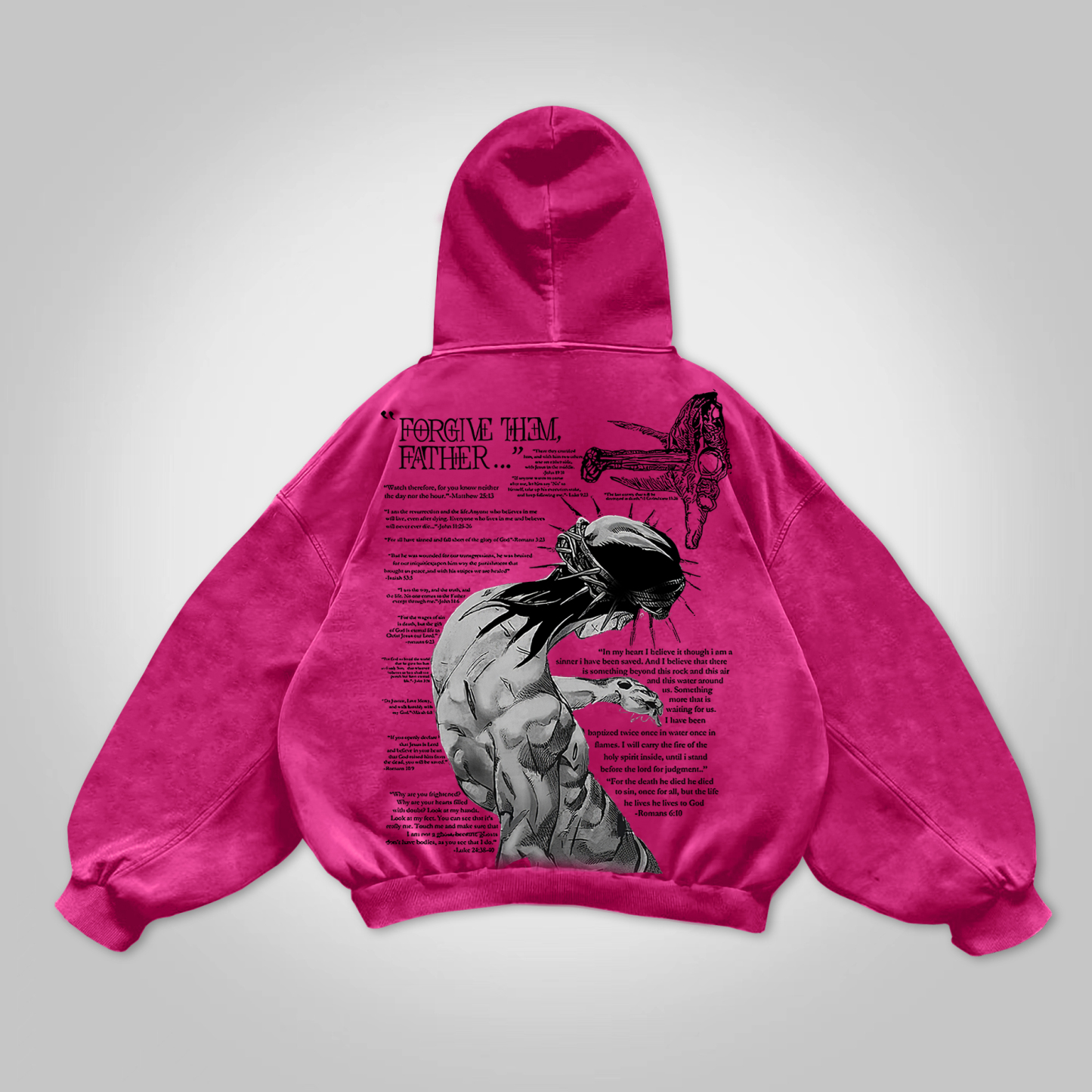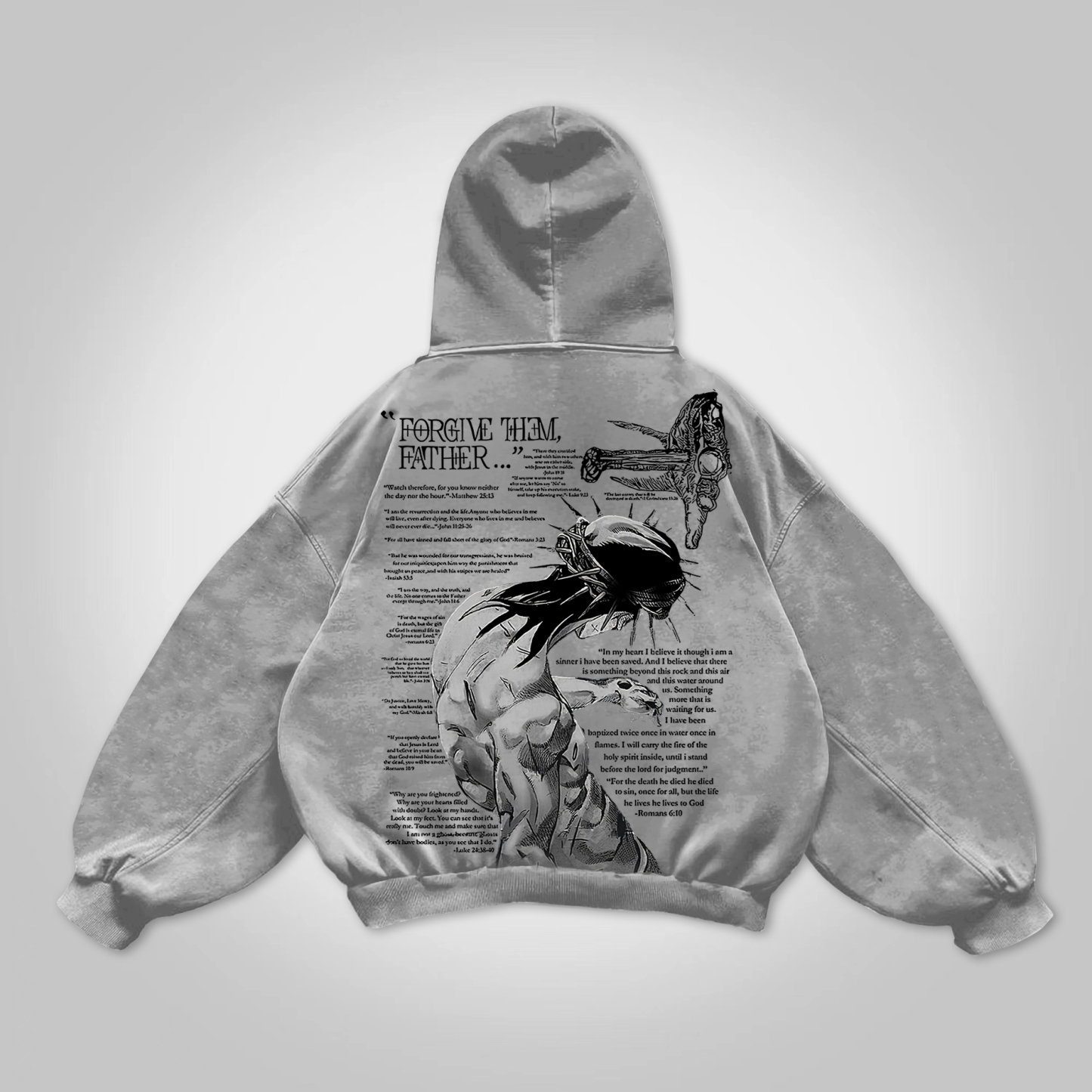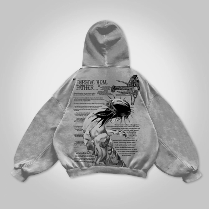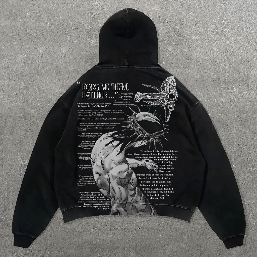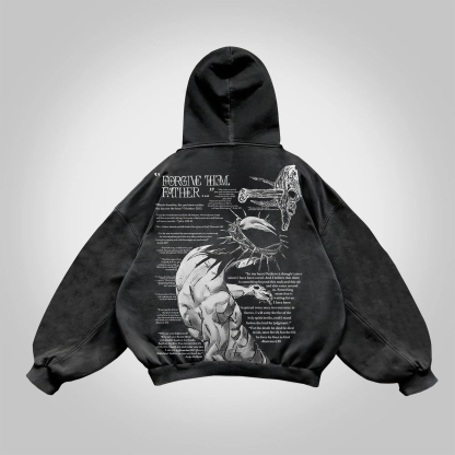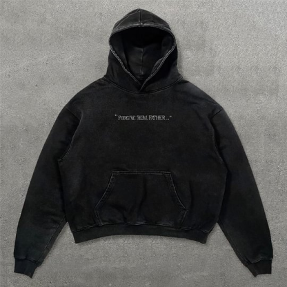 Vintage Forgive Them Father Graphic Acid Washed Oversized Hoodie