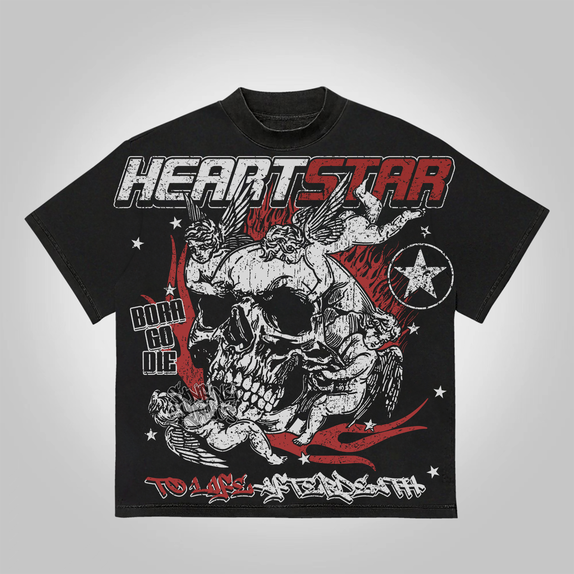 Vintage Hellstar Skull Angel Casual Cotton Short Sleeve T-Shirt