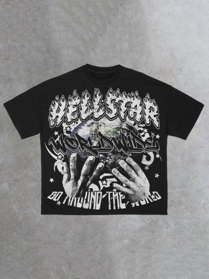 Vintage Hellstar Worldwide Casual Cotton Short Sleeve T-Shirt