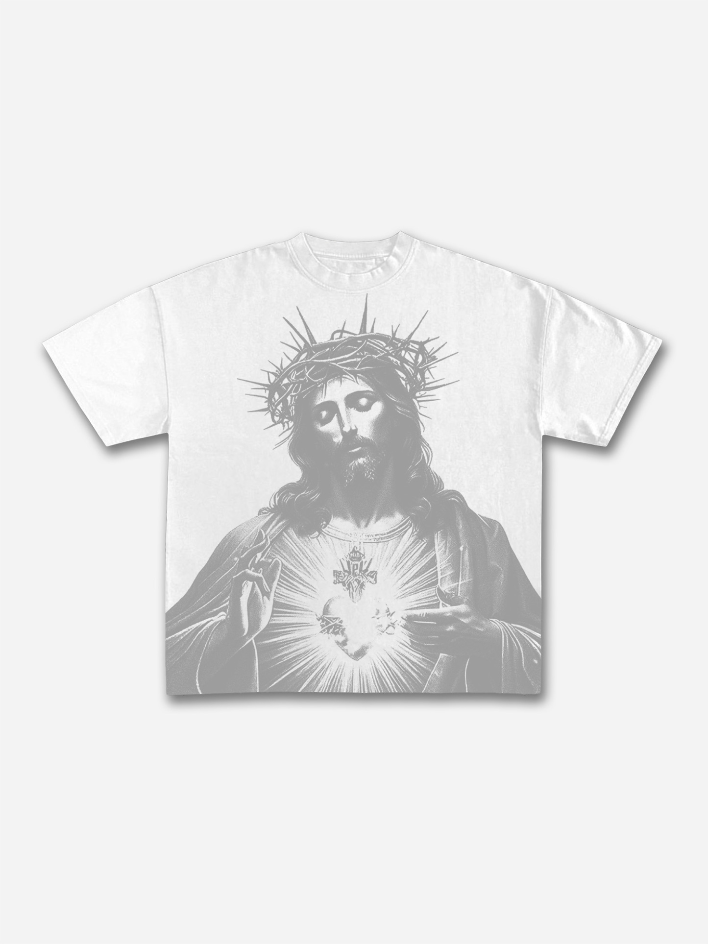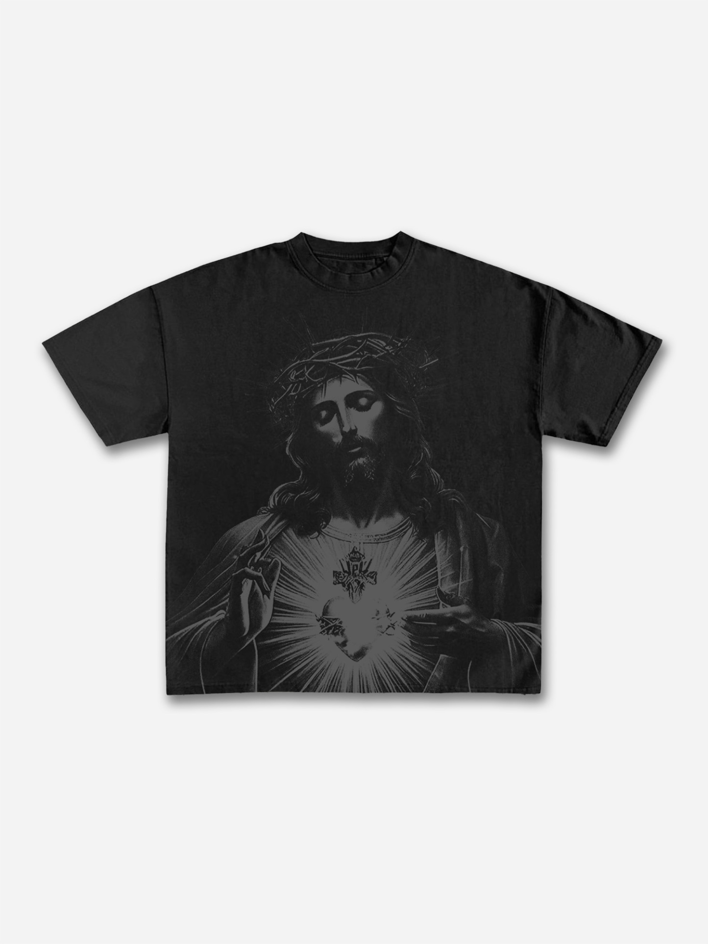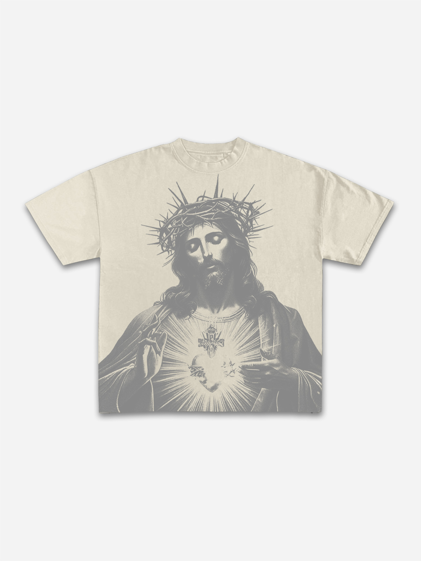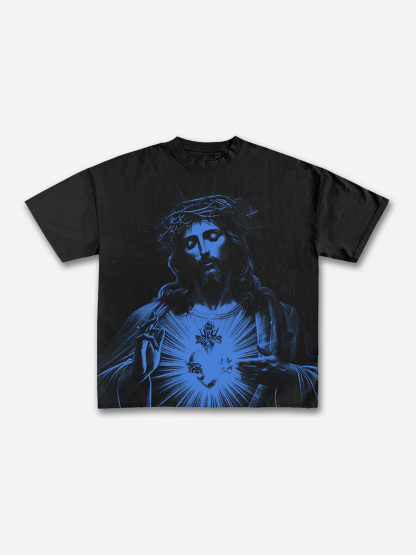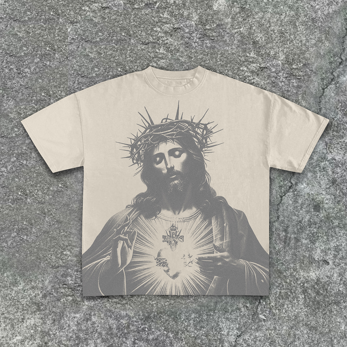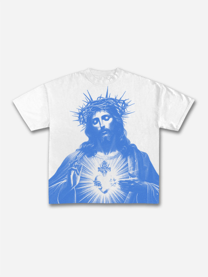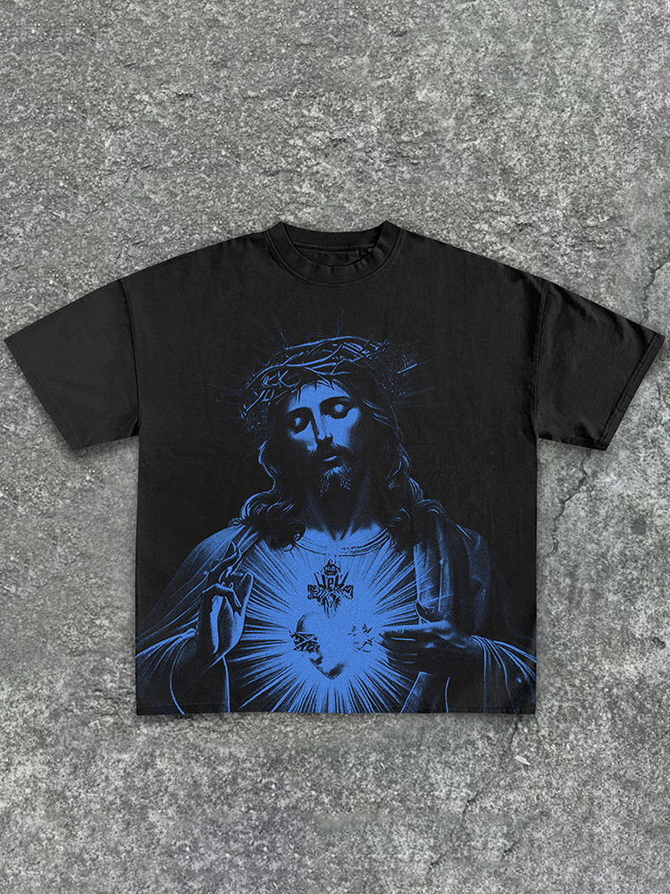 Vintage Jesus Print Round Neck 100% Cotton T-Shirt