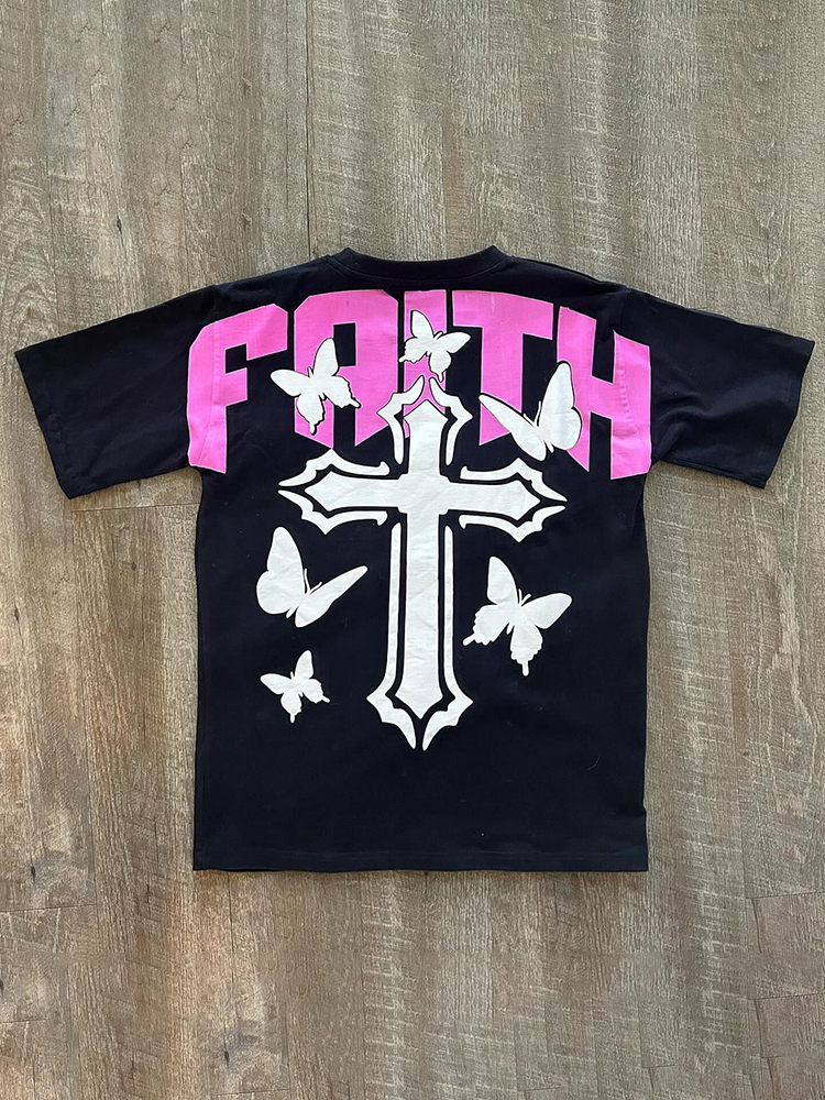 Vintage Personalized Faith Cross Graphic 100% Cotton Short Sleeve T-Shirt