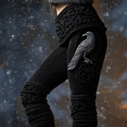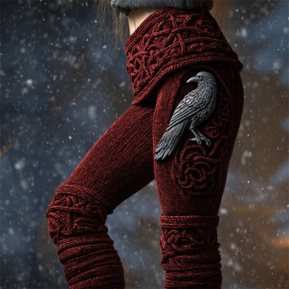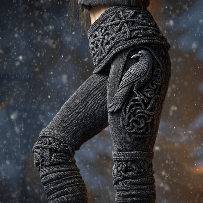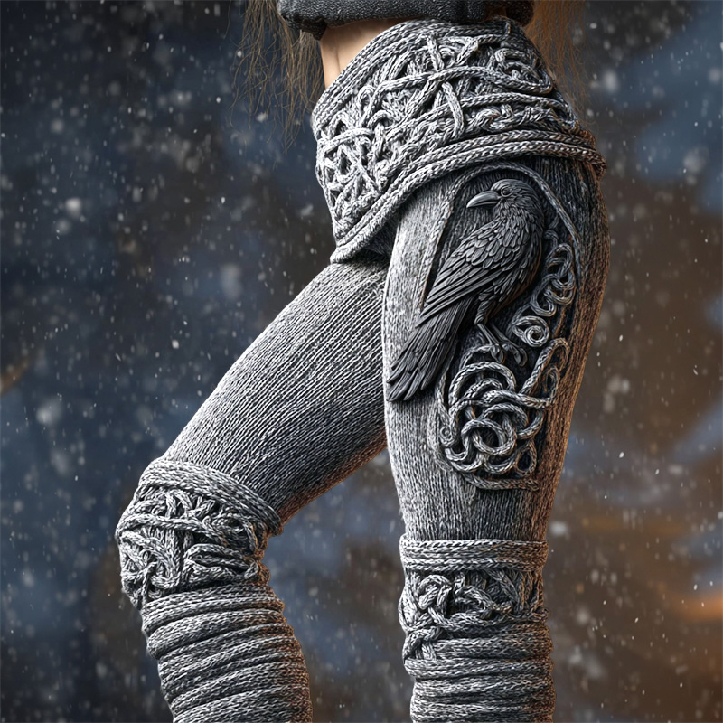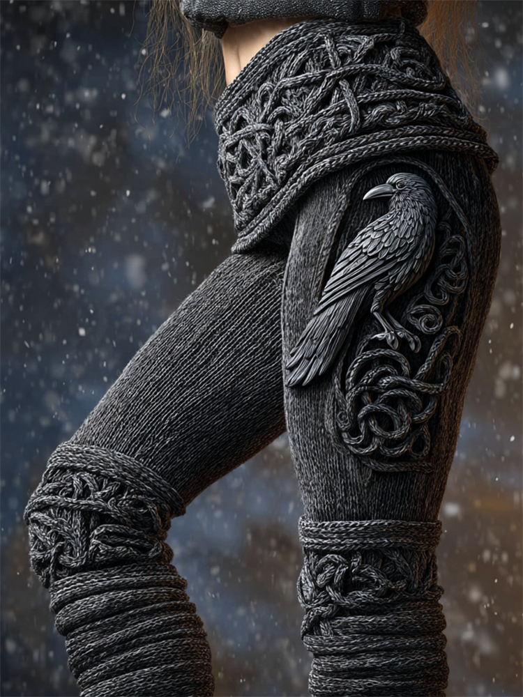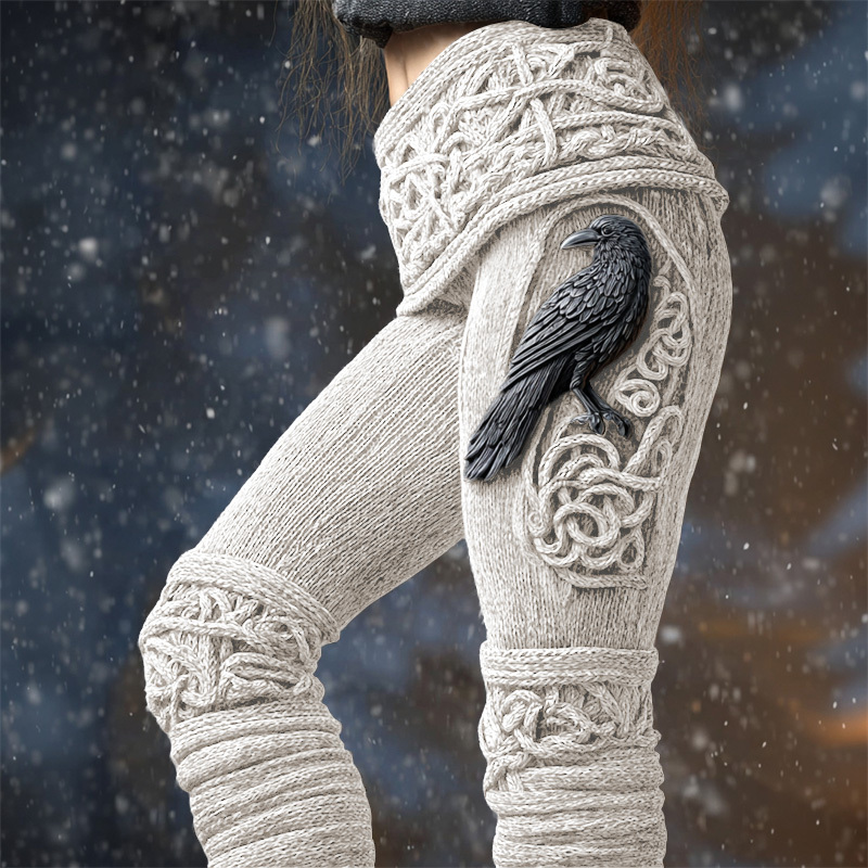 Vintage Viking Raven Celtic Knot Cozy Knit Leggings