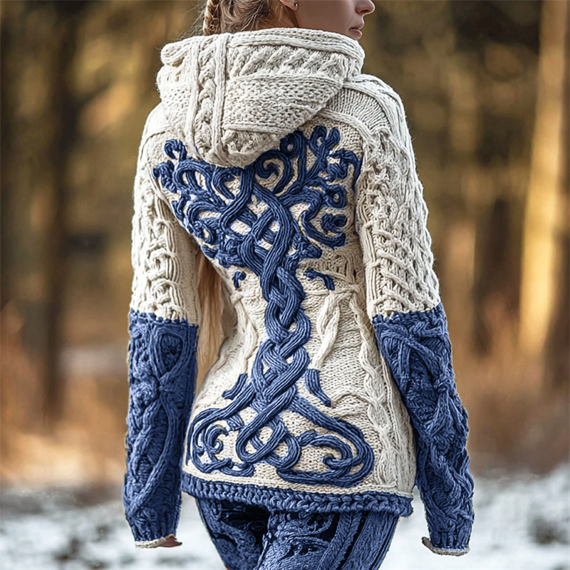 Vintage Viking Tree Of Life Celtic Contrast Cozy Hooded Sweater