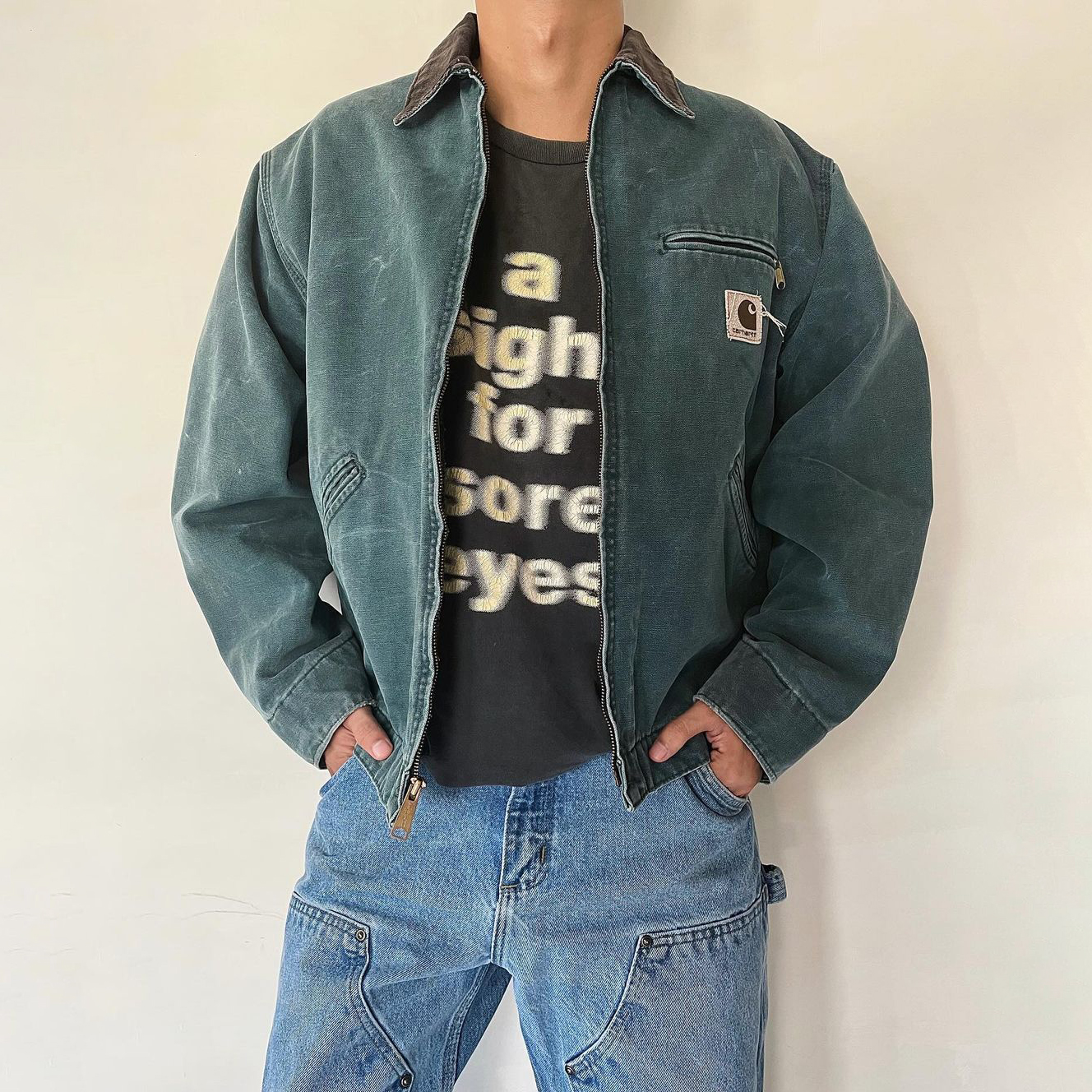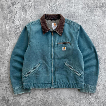 Vintage zipper distressed contrast lapel fleece jacket
