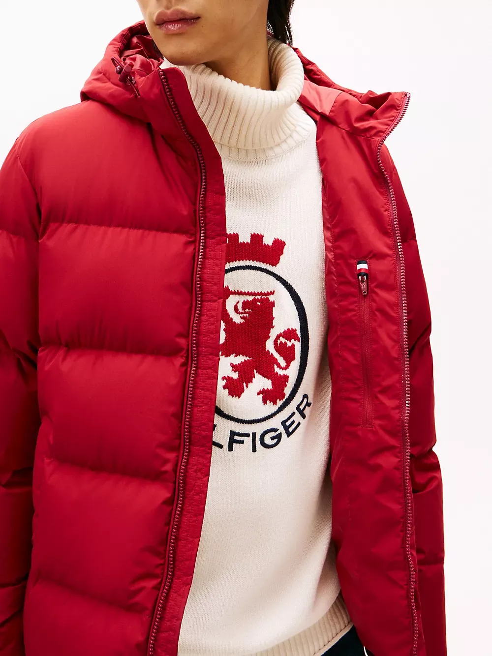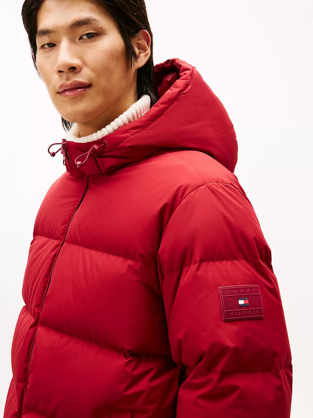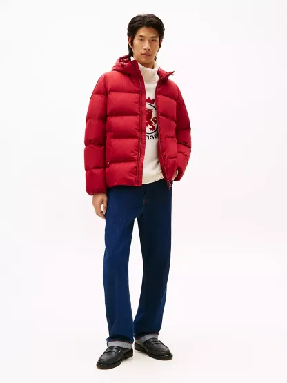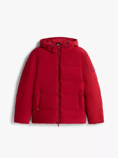 Tommy Hilfiger men's jacket. Designed to brave the elements, this hooded puffer jacket features a smooth, water-repellent shell and warm down insulation.
