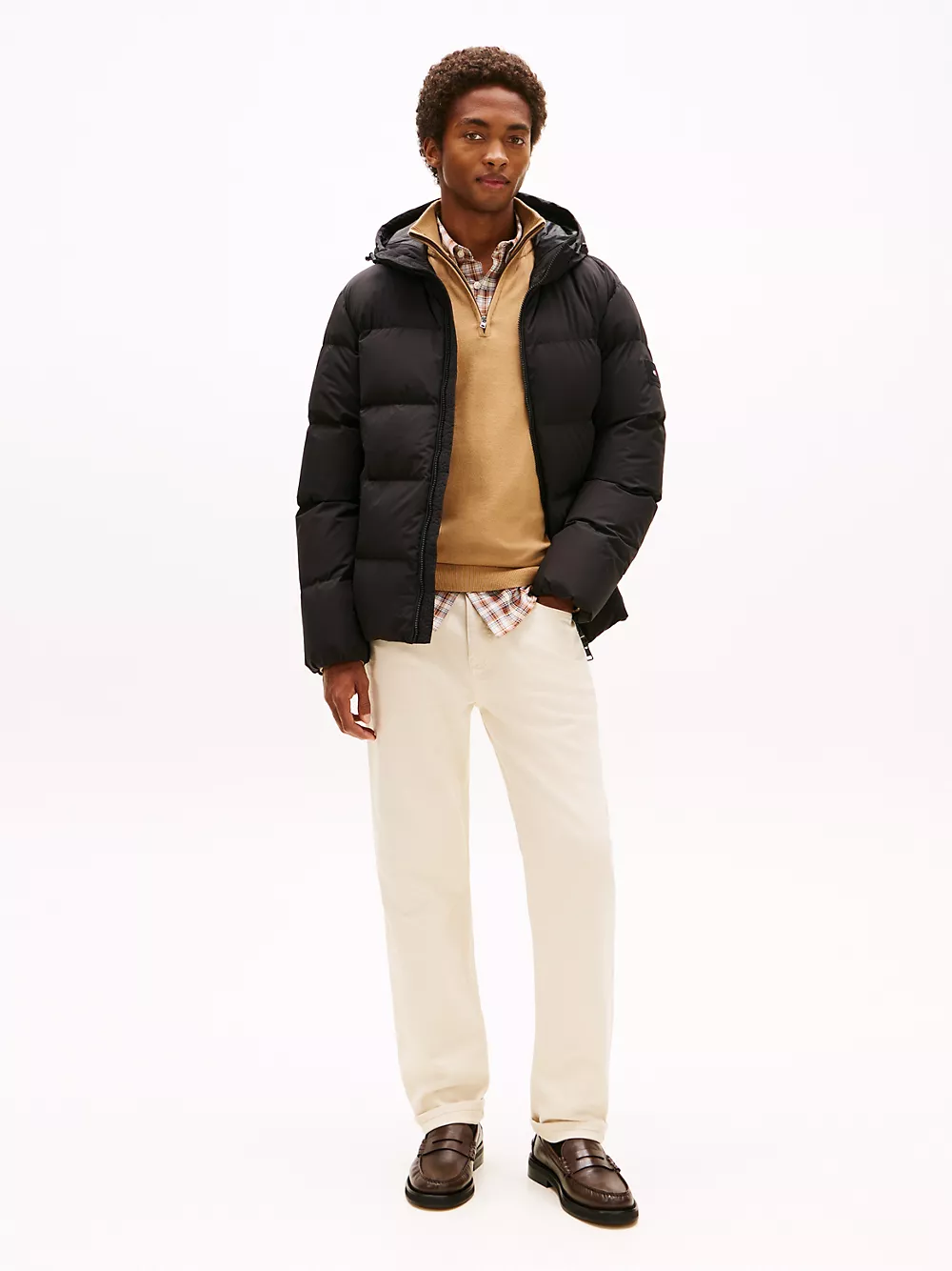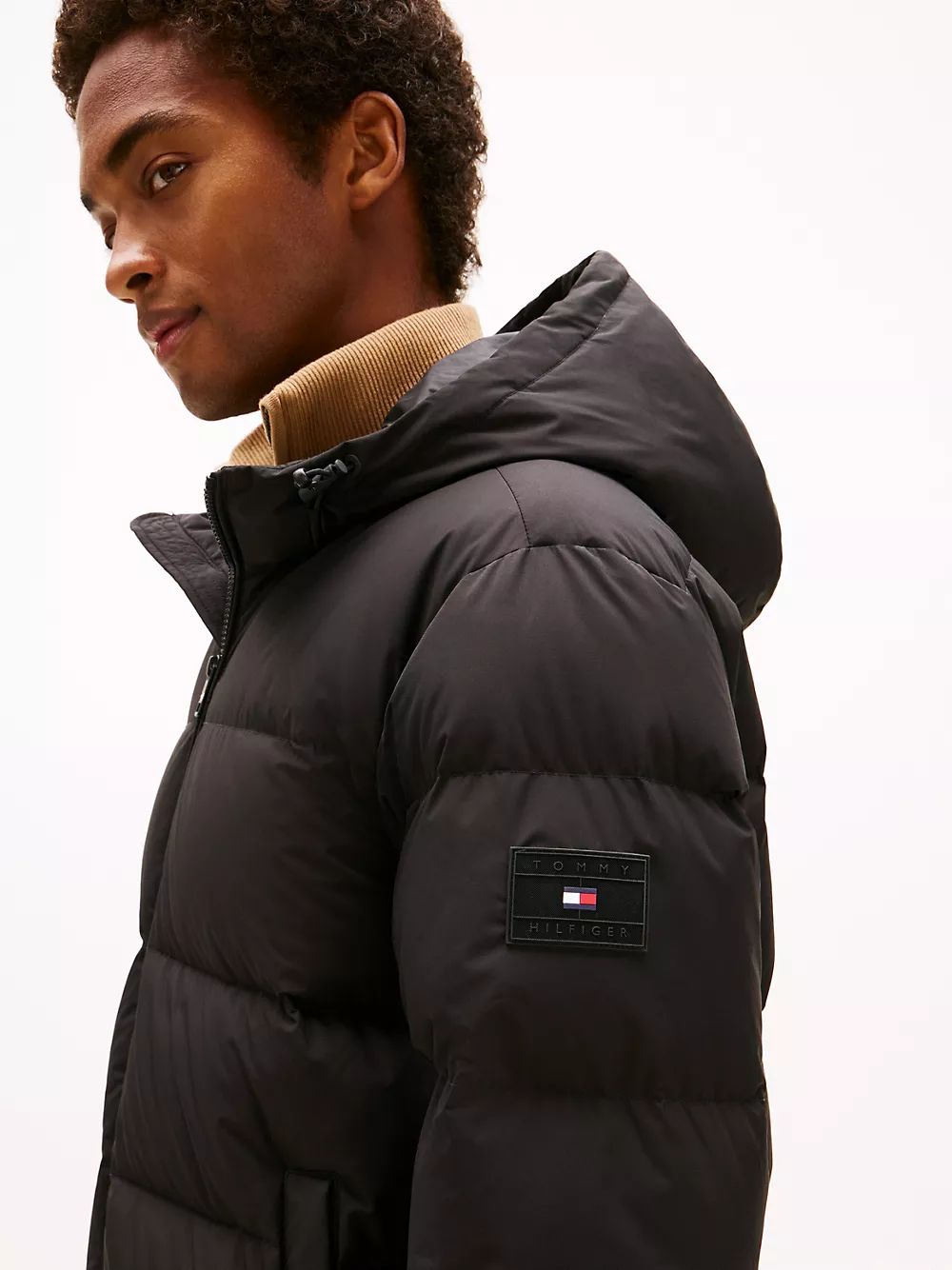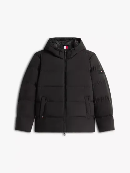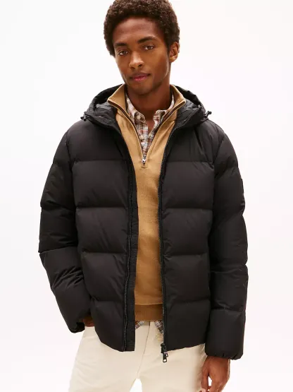 Tommy Hilfiger men's jacket. Designed to brave the elements, this hooded puffer jacket features a smooth, water-repellent shell and warm down insulation.