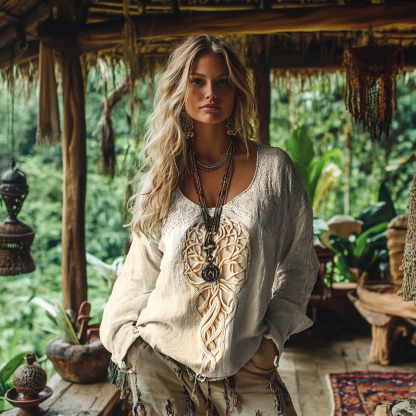 Women's Vintage U Viking Tree Of Life Art Cotton And Linen T-shirt