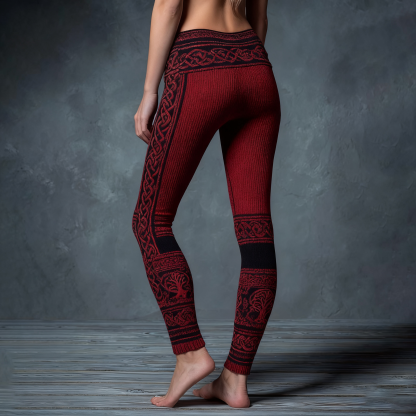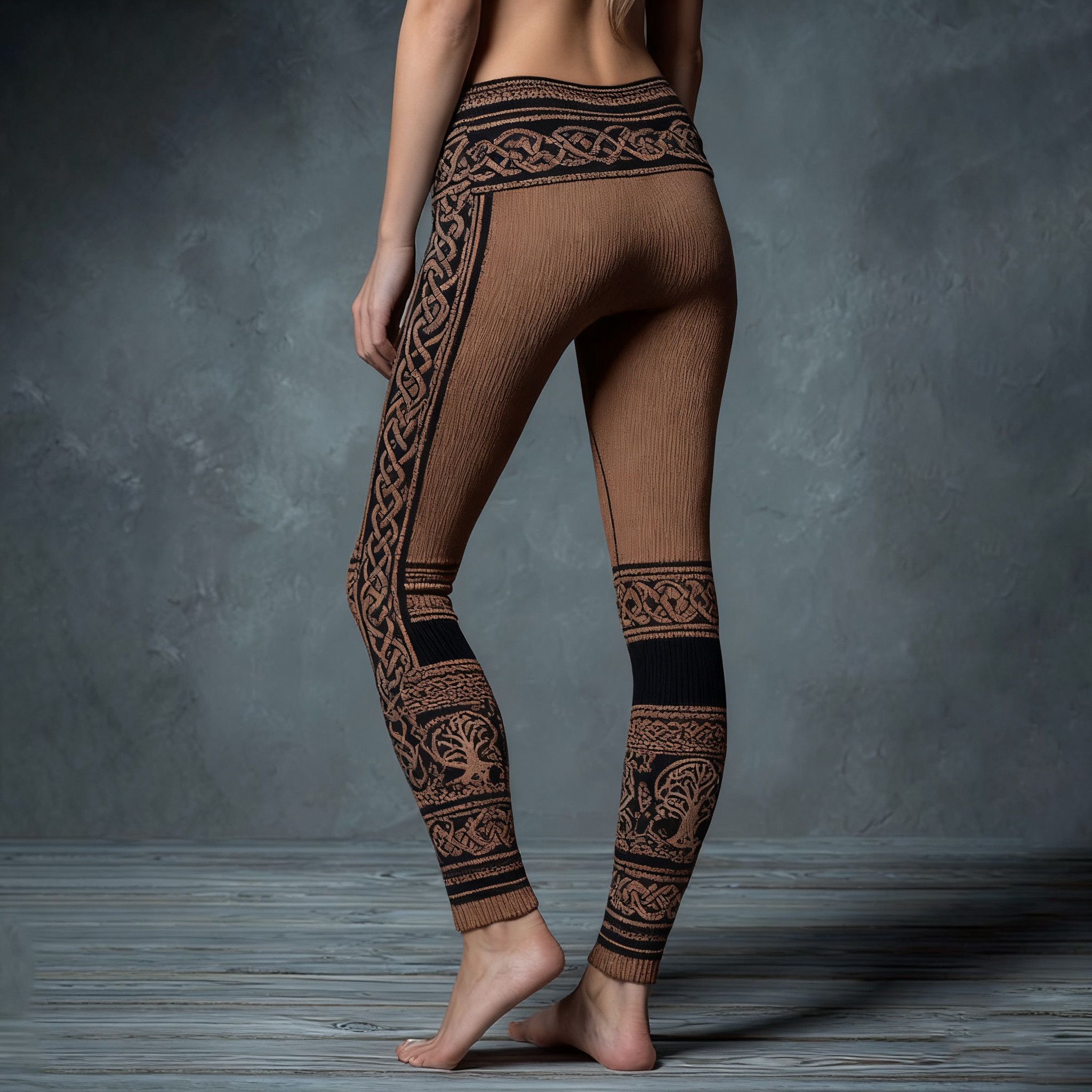 Women's Vintage Viking Tree Of Life Celtic Knot Art Knit Leggings