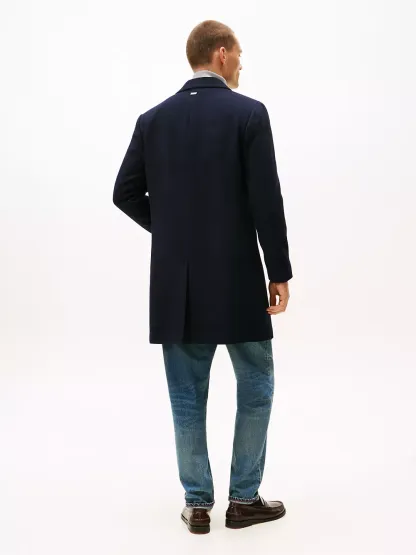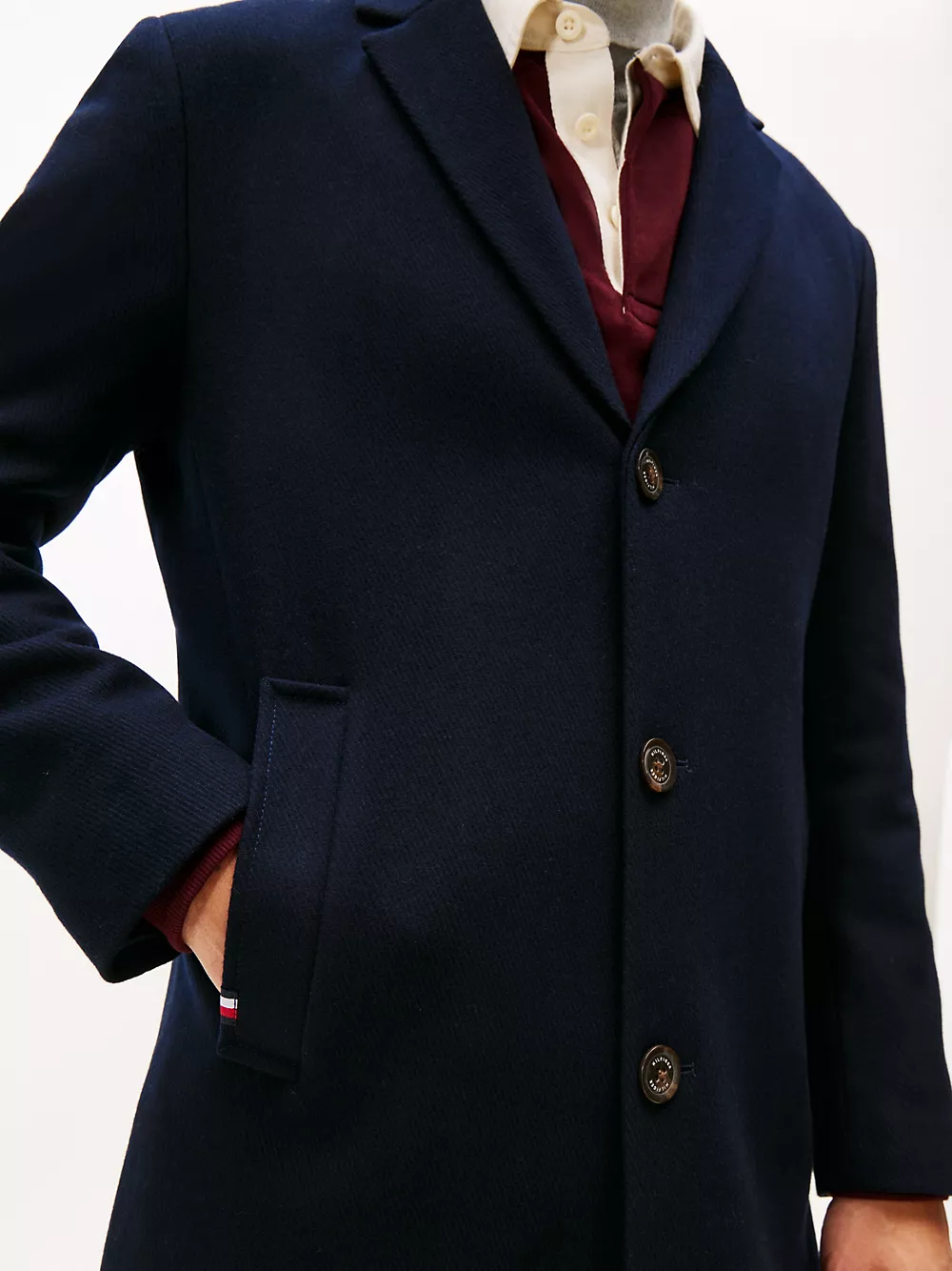 Tommy Hilfiger men's coat. Casual yet polished, our coat transitions from weekday to weekend wear with ease. Made from a warm wool blend, this timeless style will live in your wardrobe for years.