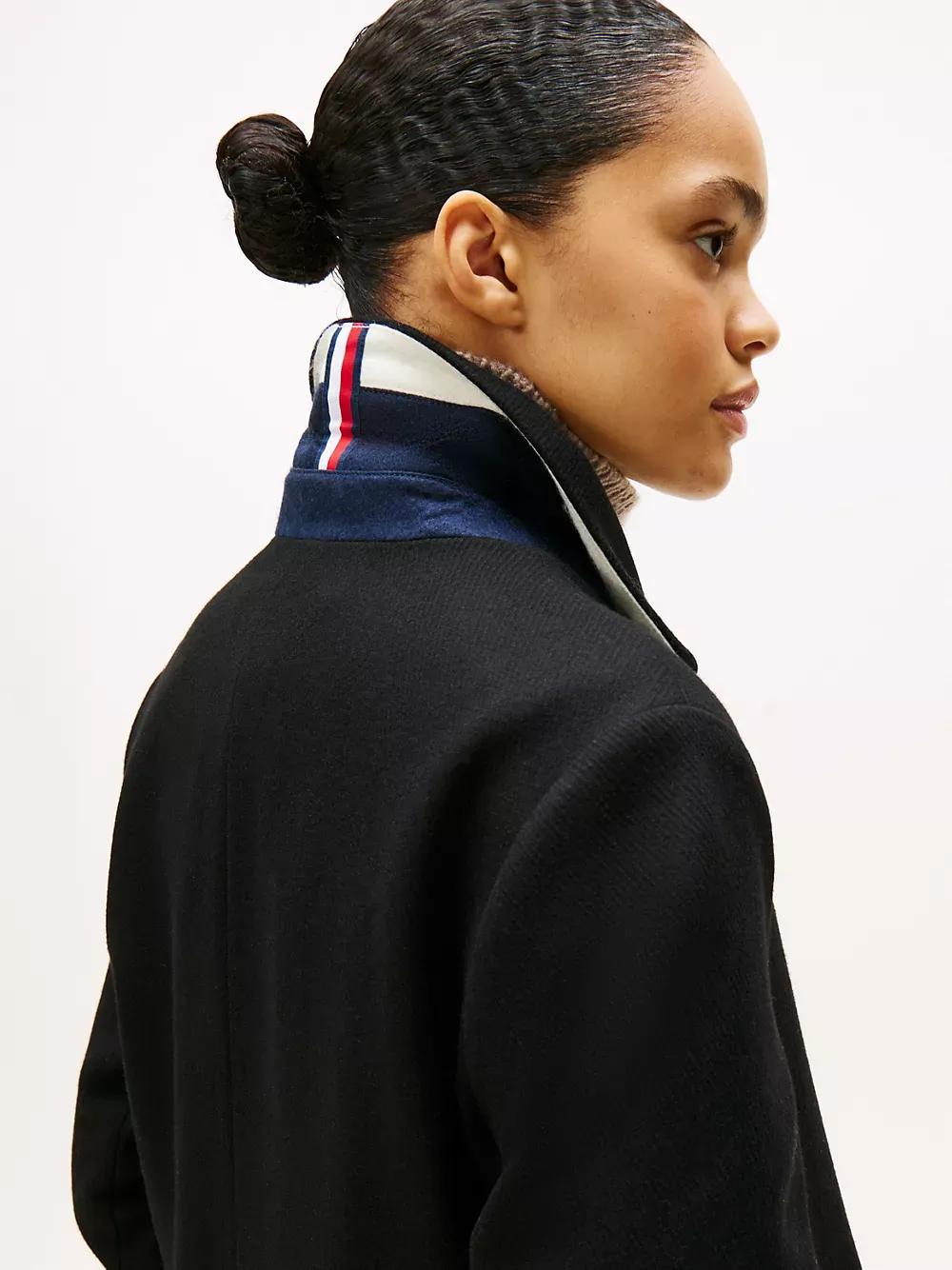 Tommy Hilfiger women's coat. Our timeless double-breasted coat features oversized lapels and traditional detailing to retain a simple, classic look. This versatile outer layer is made from a toasty wool-blend, so you'll feel warm without the bulk.