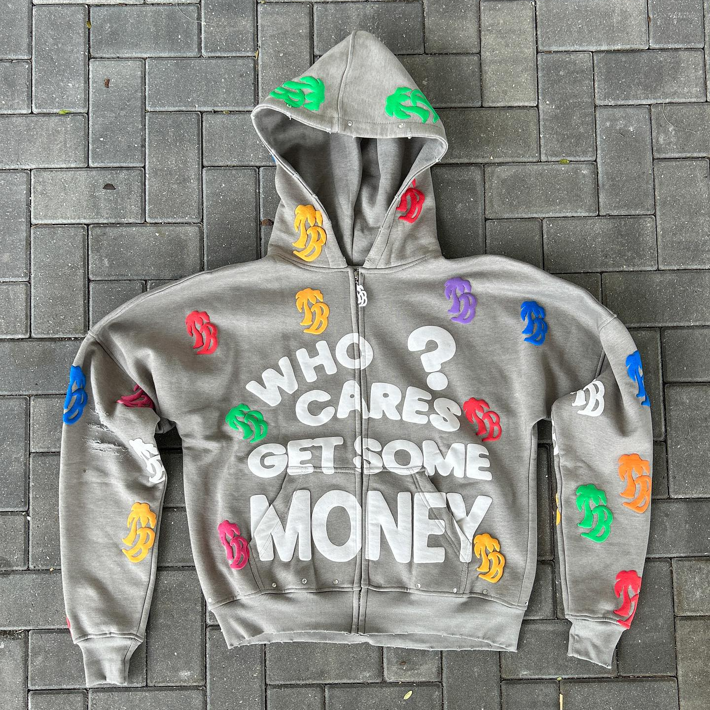 Vintage Letter Print Zip-Up Hoodie Set